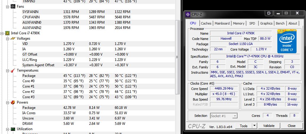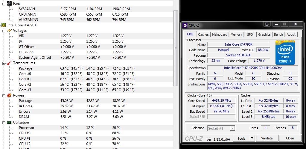 Bei mir läuft seit kurzem ein i7-4790K auf nem ASRock Extreme9. Gekühlt wird das ganze zur Zeit von ner Billig-AIO LC-Power 120 Lico. Das ist ein Überrest meines alten Systems mit nem Xeon 1231v3. Dafür war die völlig ausreichend. Der 4790K läuft auf 4,5GHz - da kriegt der schon nen warmen Hintern beim rendern.