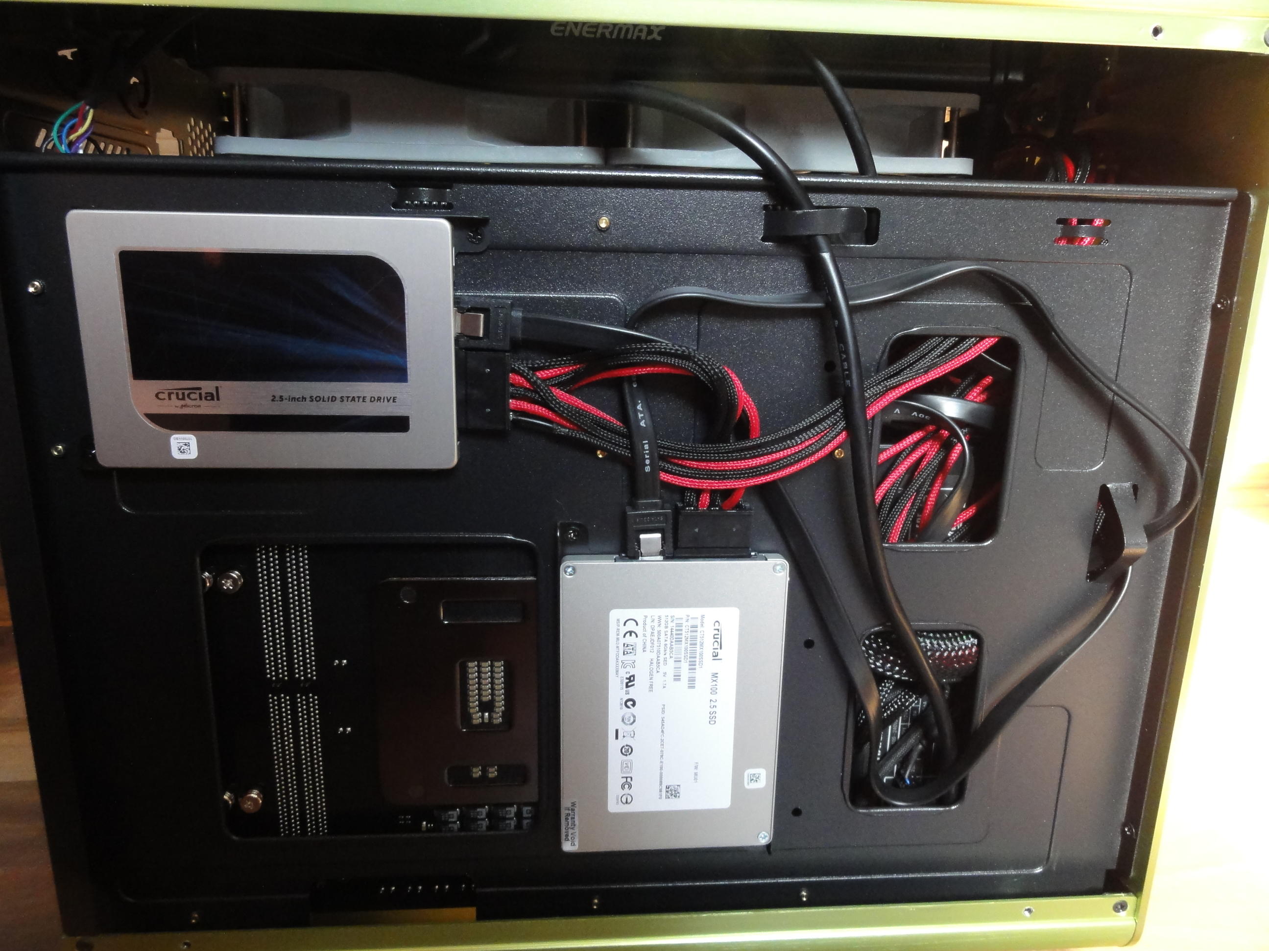 - wenn man am Boden Lüfter und HDD verbauen möchte, wird es etwas fummelig. Hier sollte man zuerst alle Kabel verlegen, dann das Mainboard, dann die HDD / Lüfter