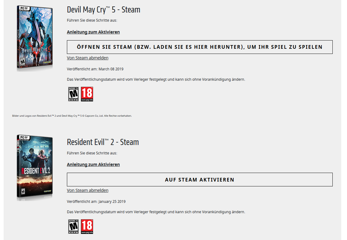 | Resident Evil™ 2 | Devil May Cry™ 5 | Tom Clancy's The Division® 2 |