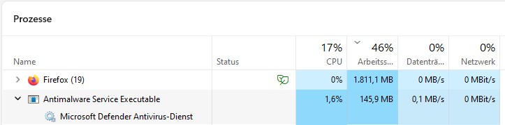 Alles klar, vielen Dank für eure & deine Hilfe. Ich denke auch, dass ich einfach über reagiert habe. Ich denke mich hat die Sache mit dem Antimalware Service Executable einfach sehr irritiert.