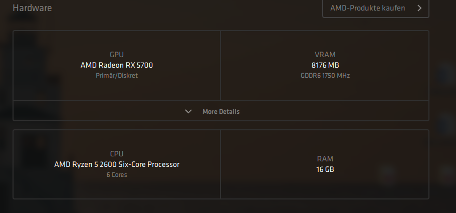• Prozessor: i5-7600 @ 3.5GHz or Ryzen 5 1600 @ 3.2GHz