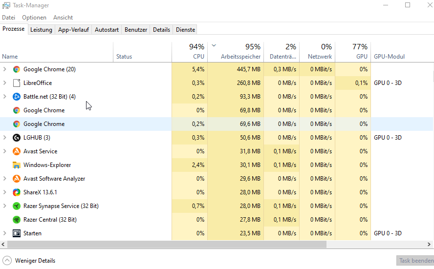 Also Avast alleine ist sicher nicht für die Auslastung, die man auf seinem Screenshot sieht zuständig.