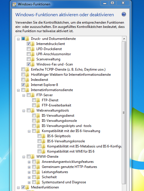 Dann in der Systemsteuerung bei "Programme und Funktionen/Erweiterte Features" den Haken bei