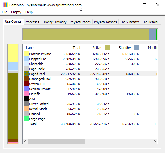 heute probiere ich nochmal mein Problem zu erklären, diesmal habe ich auch passende Screenshots dazu. Mein RAM fährt sich immer wieder fest ohne frei zu werden. Folglich wird er sehr langsam und manche Anwendungen lassen sich dann gar nicht mehr starten, nur ein Neustart bringt Abhilfe. Diesen PC habe ich erst seit Dezember 2019 und obwohl er doppelt soviel RAM wie mein alter PC besitzt, hat der Vorgänger nie solche Probleme gehabt (er lief oft tagelang im Dauerbetrieb).