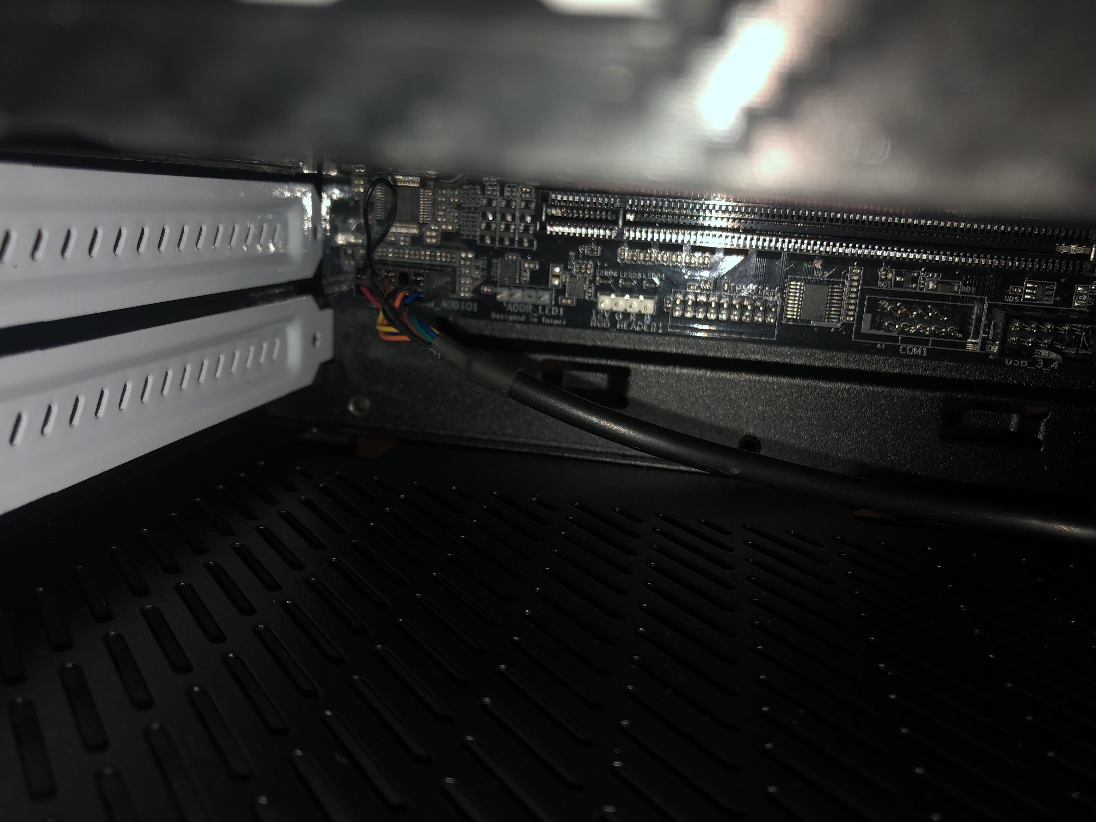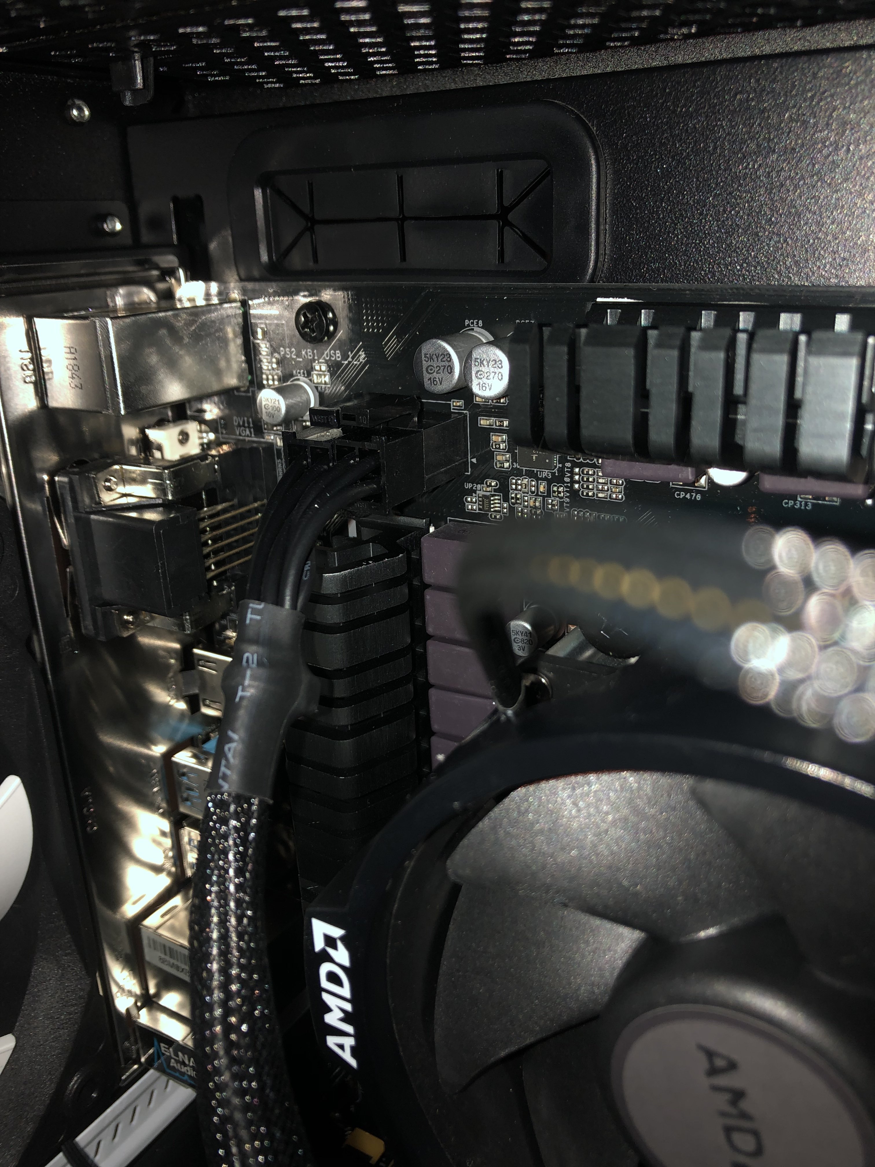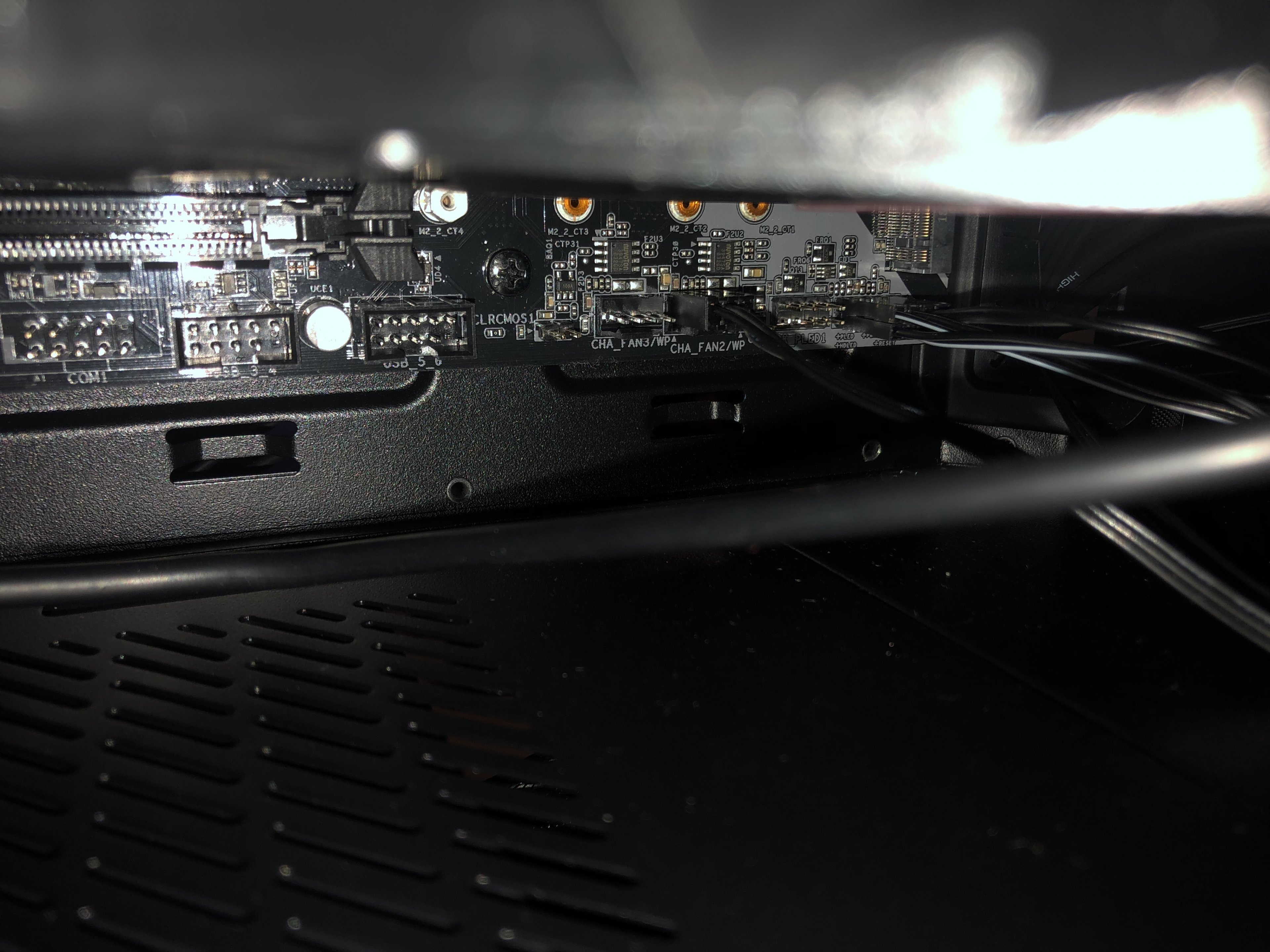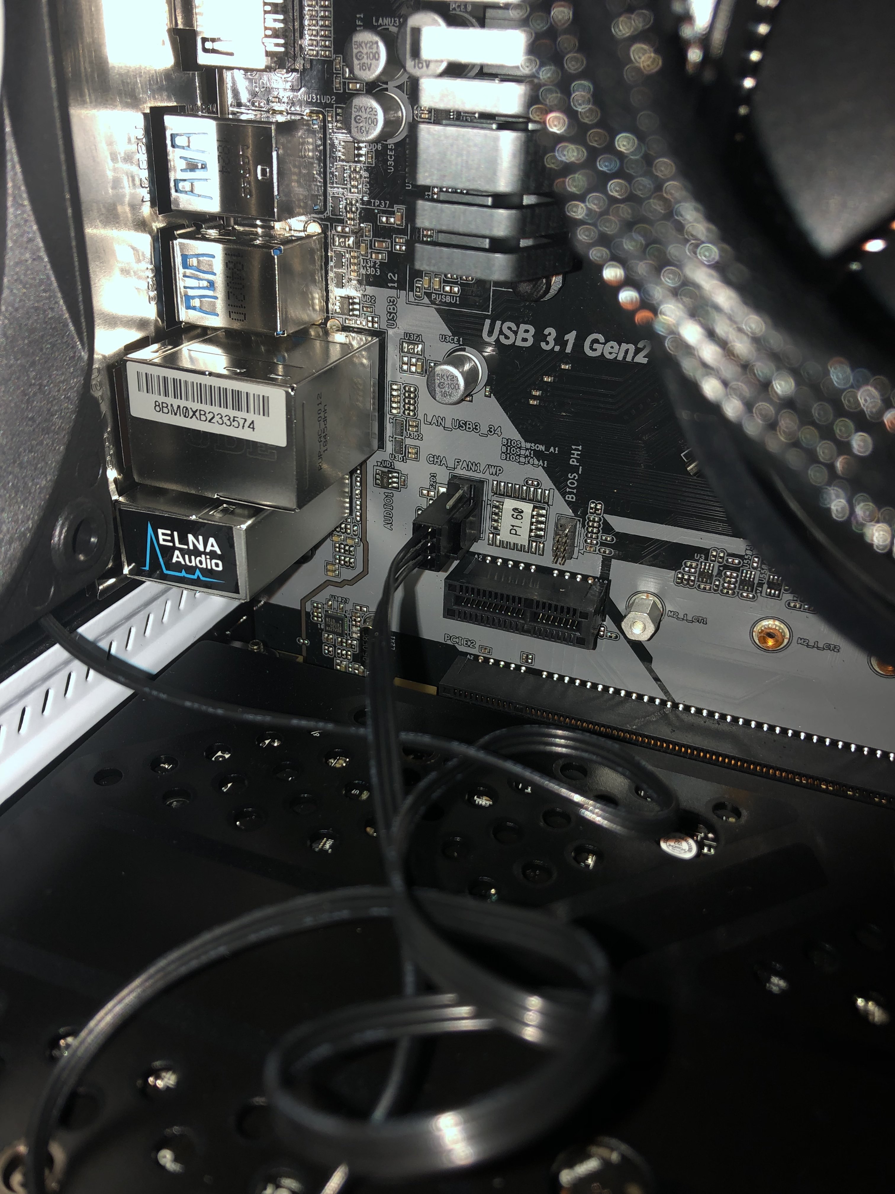 Wenn du jetzt nochmal im Gehäuse testen willst, solltest du alles unnötige vom Board abstecken, also auch den Audio- und Frontpanel-Konnektor, nur den Ein-/Austaster davon dranlassen.