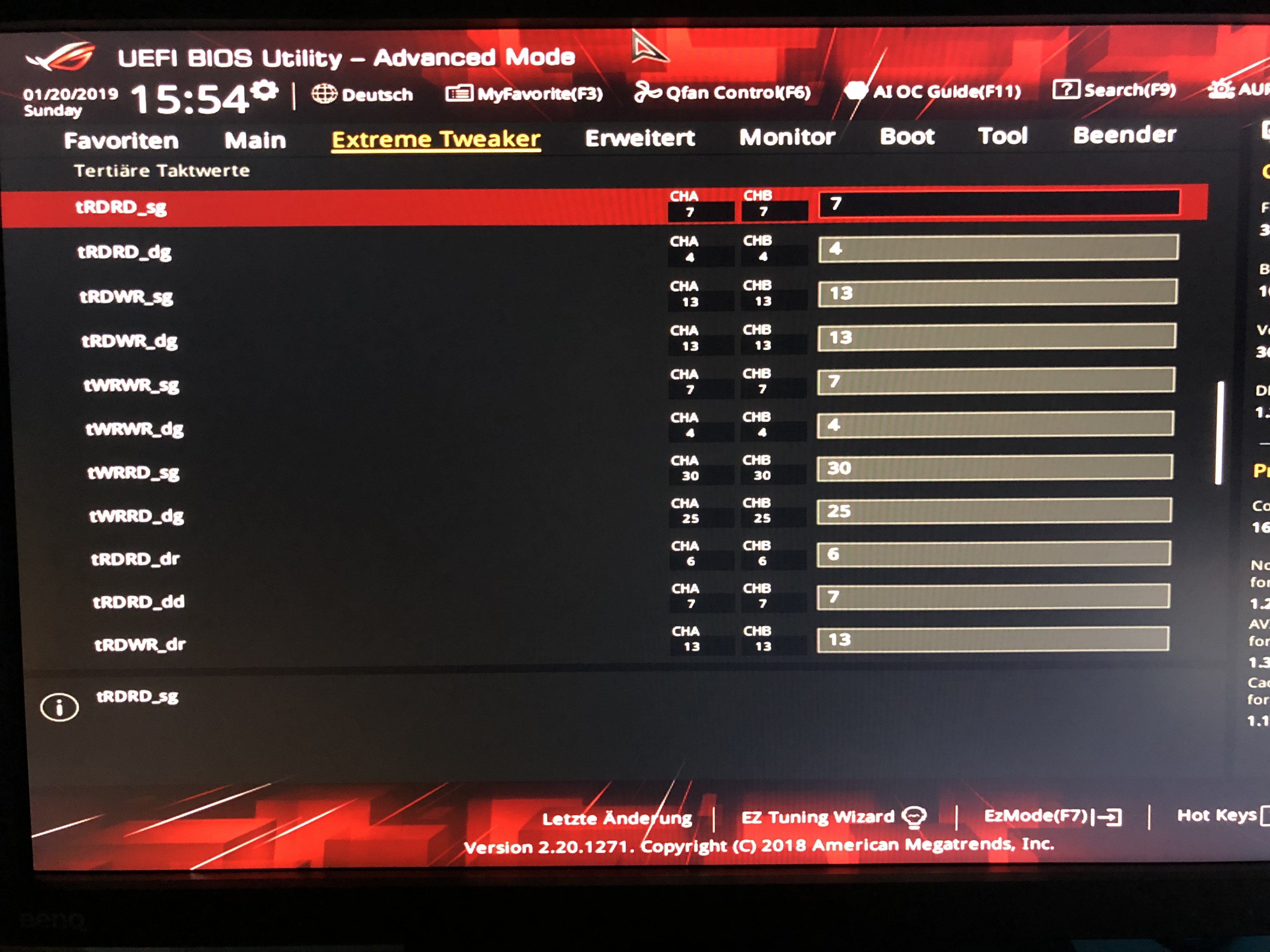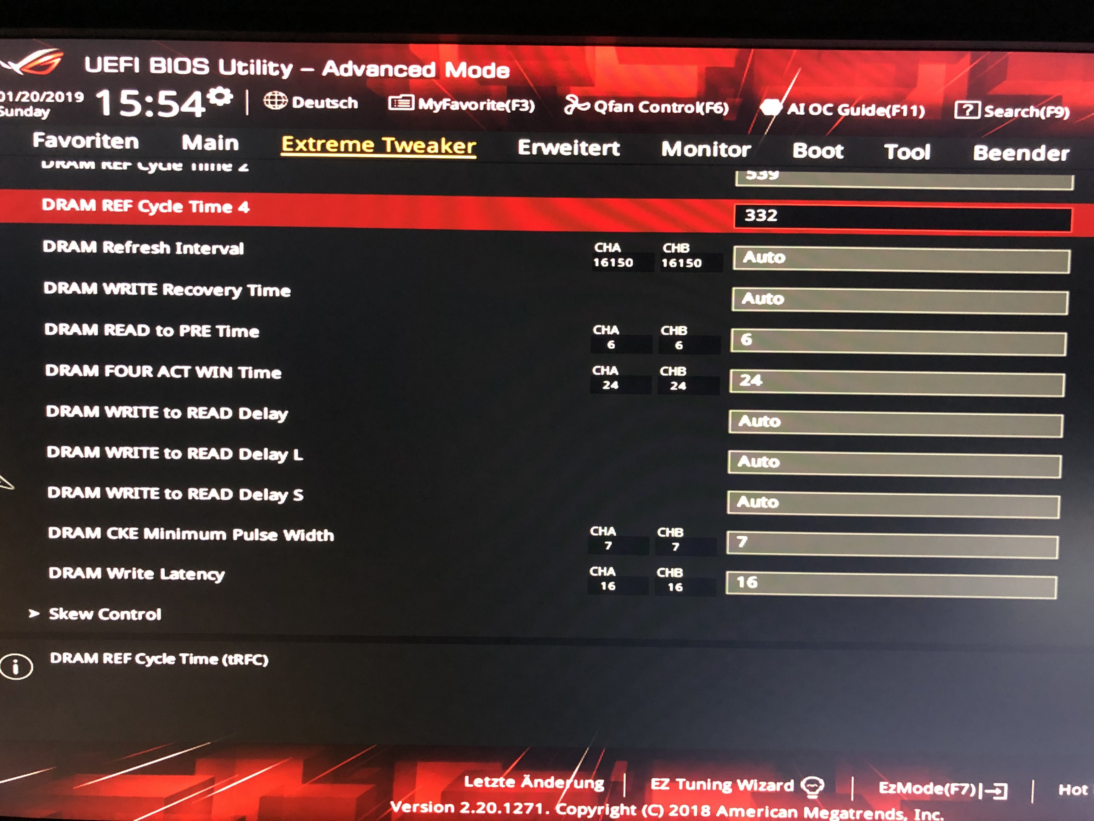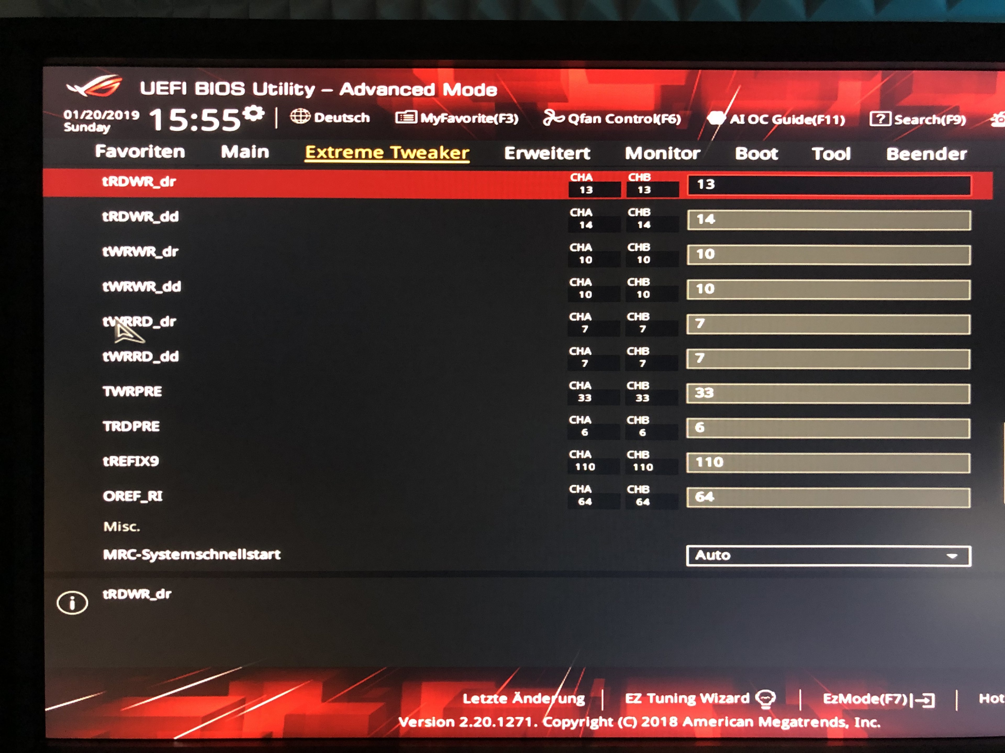 Nun habe ich derzeit 32GB ( 4x 8Gb ) Hyper X 4133Mhz mit 1,35V laufen und CL18-19-19-38 . Memtest keine Errors, Spieletest Battlefield 5 stabil. Nun will ich mich noch mehr an die Timings machen und schauen was da noch so geht. Leider fehlt mir gerade im Bereich Subtimings die Erfahrung