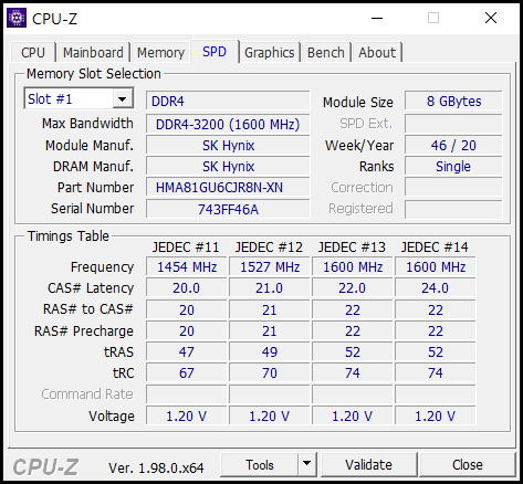 Slot1: 8GB SK Hynix DDR4 3200 (HMA81GU6CJR8N-XN)