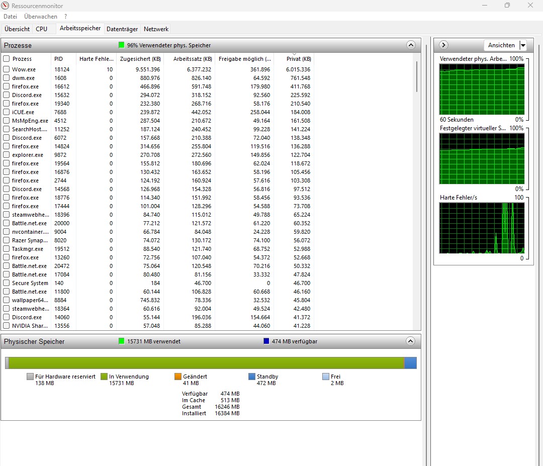 Nun kann ich aber nichtmal WoW offen haben und auf dem zweiten Bildschirm Firefox ohne dass mein RAM bei 100% Auslastung ist und das Spiel extreme PErformance Probleme bekommt.