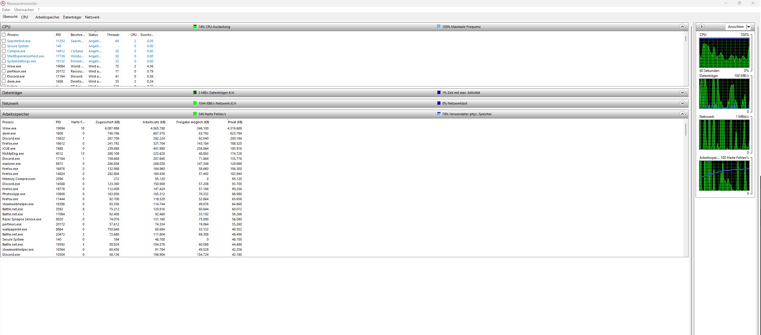 Ich starte den PC und schaue in den Taskmanager (Nicht in der Prozess übersicht sondern da wo man die Leistung sieht.