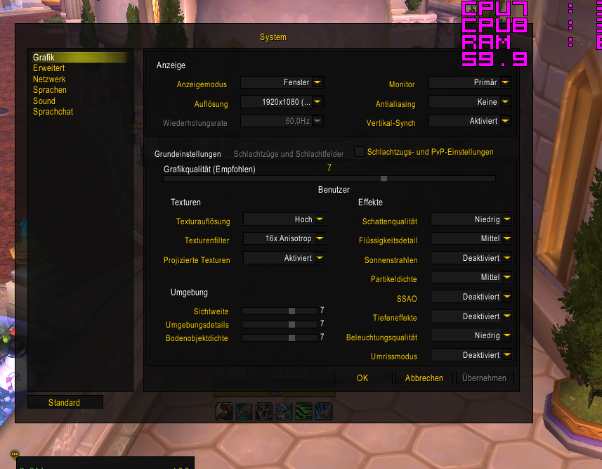 ich möchte aufgrund von FPS einbrüchen in World of Warcraft -