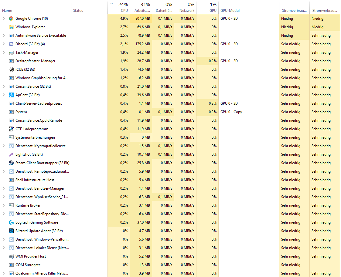 Mein Prozessor geht bei spielen wie Destiny 2, CSGO, Farming Simulator, ARK ... fast nie unter 90% (20-40% ohne Spiel).