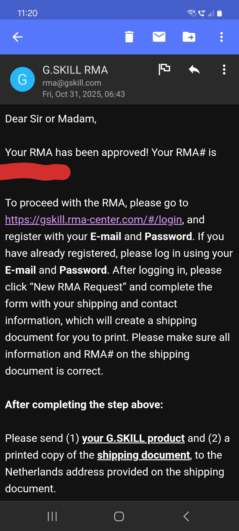 G.Skill hat eigentlich eine Lifetime-Warranty und auf der Website wird darauf hingewiesen, dass bei einer RMA immer das vollständige Kit zugeschickt werden soll. D.h. ich brauche Ersatz während der Prozedur.