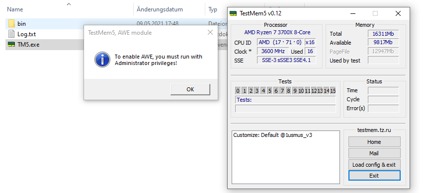 Test Ram : 16GB (2x 8192MB) G.Skill Trident Z RGB DDR4-3200 DIMM