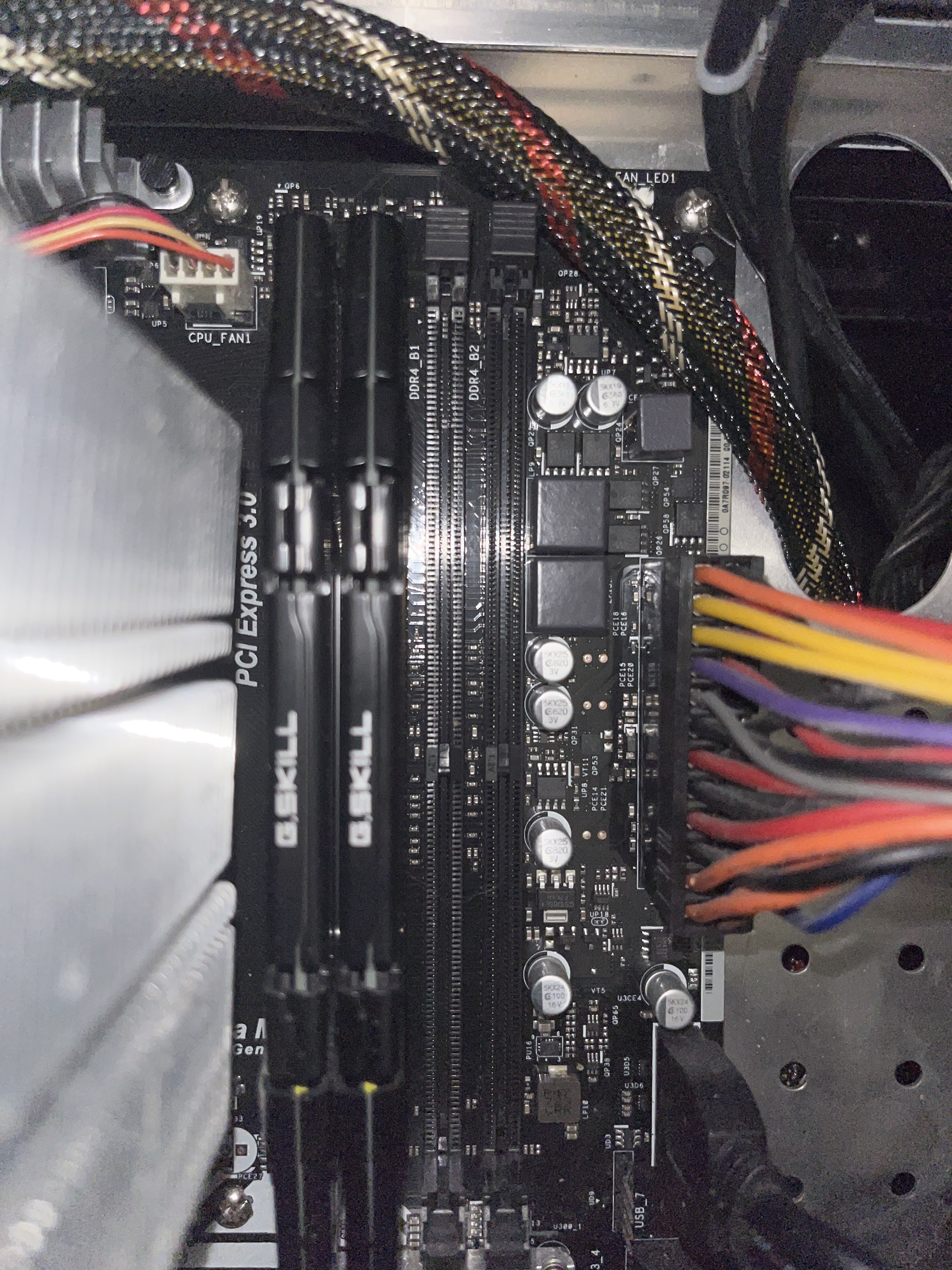 Ah, der Gskill ist also der alte und der Corsair RAM soll dazu. Hast du schon mal Ram eingebaut? Man muss u.U. schon ziemlich fest drücken bis das einrastet, insbesondere wenn das MB sich ein wenig nach unten biegt. Auch noch mal sicher stellen, dass die Riegel richtig rum gedreht sind.