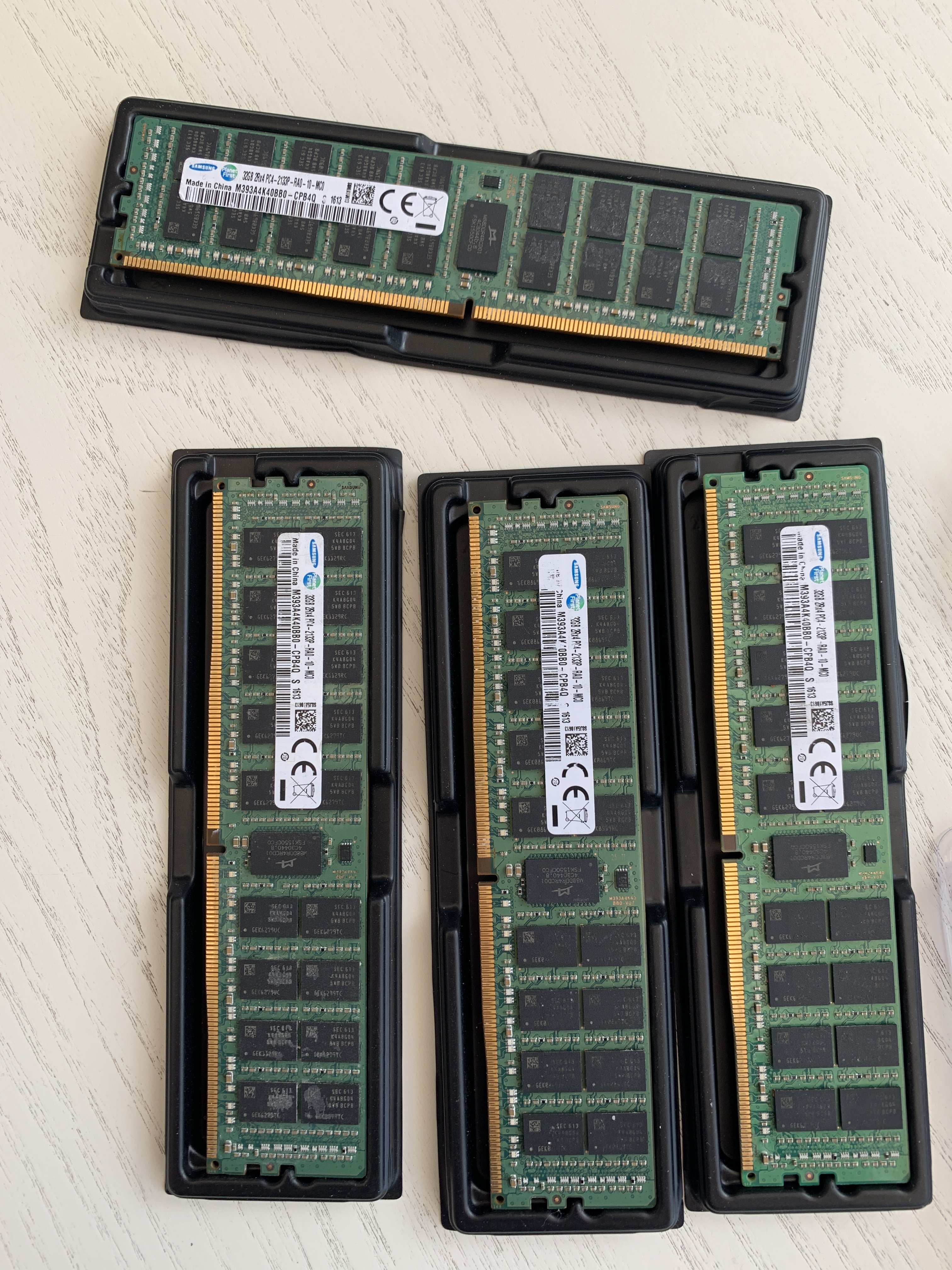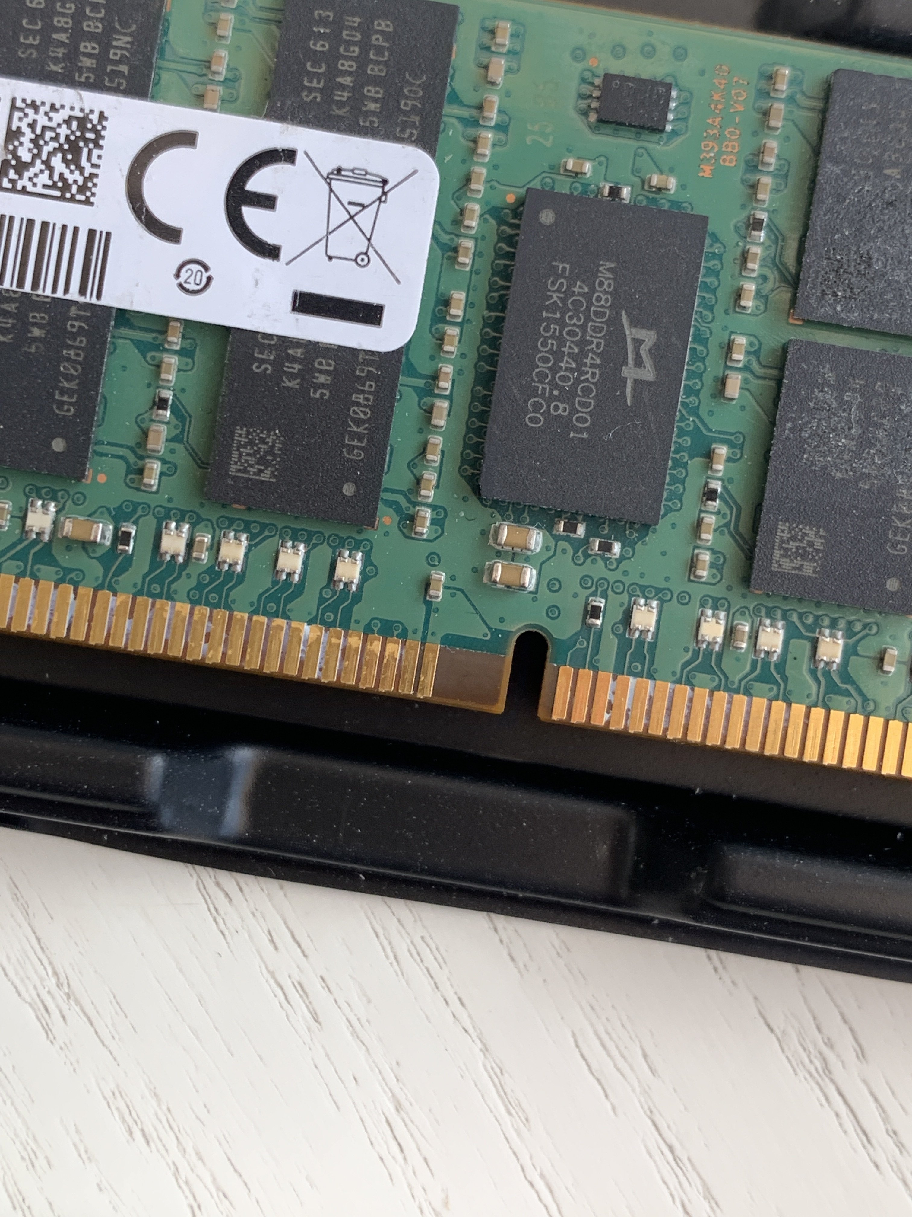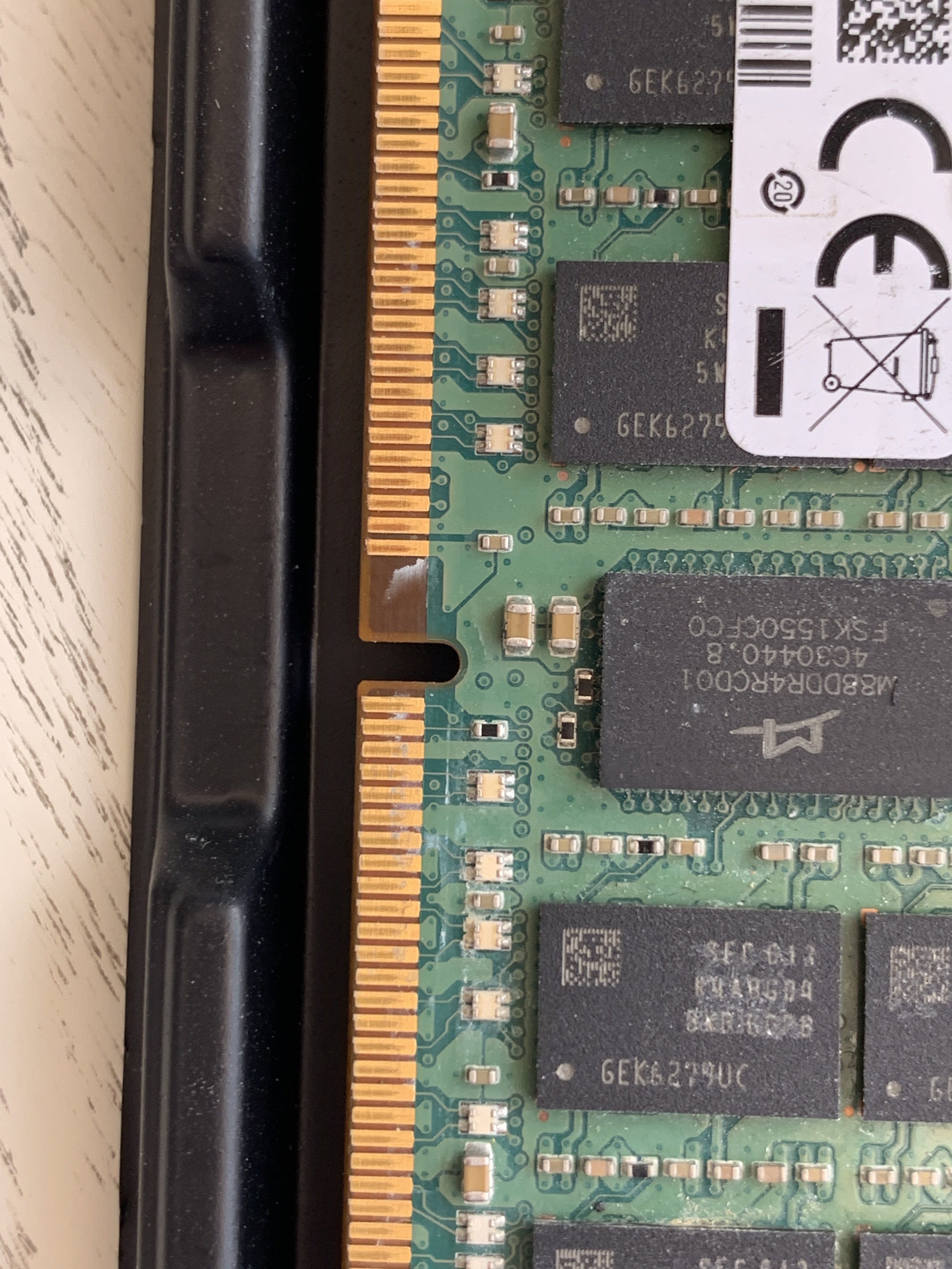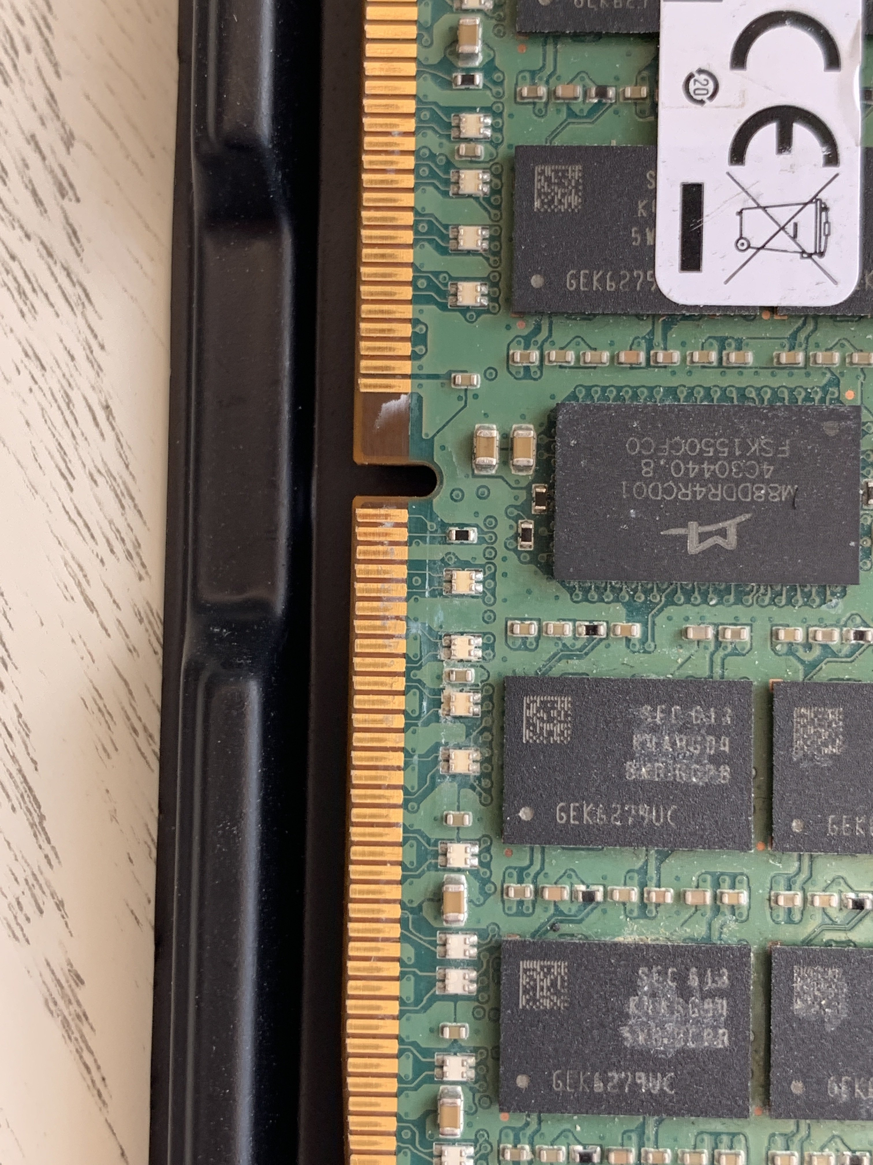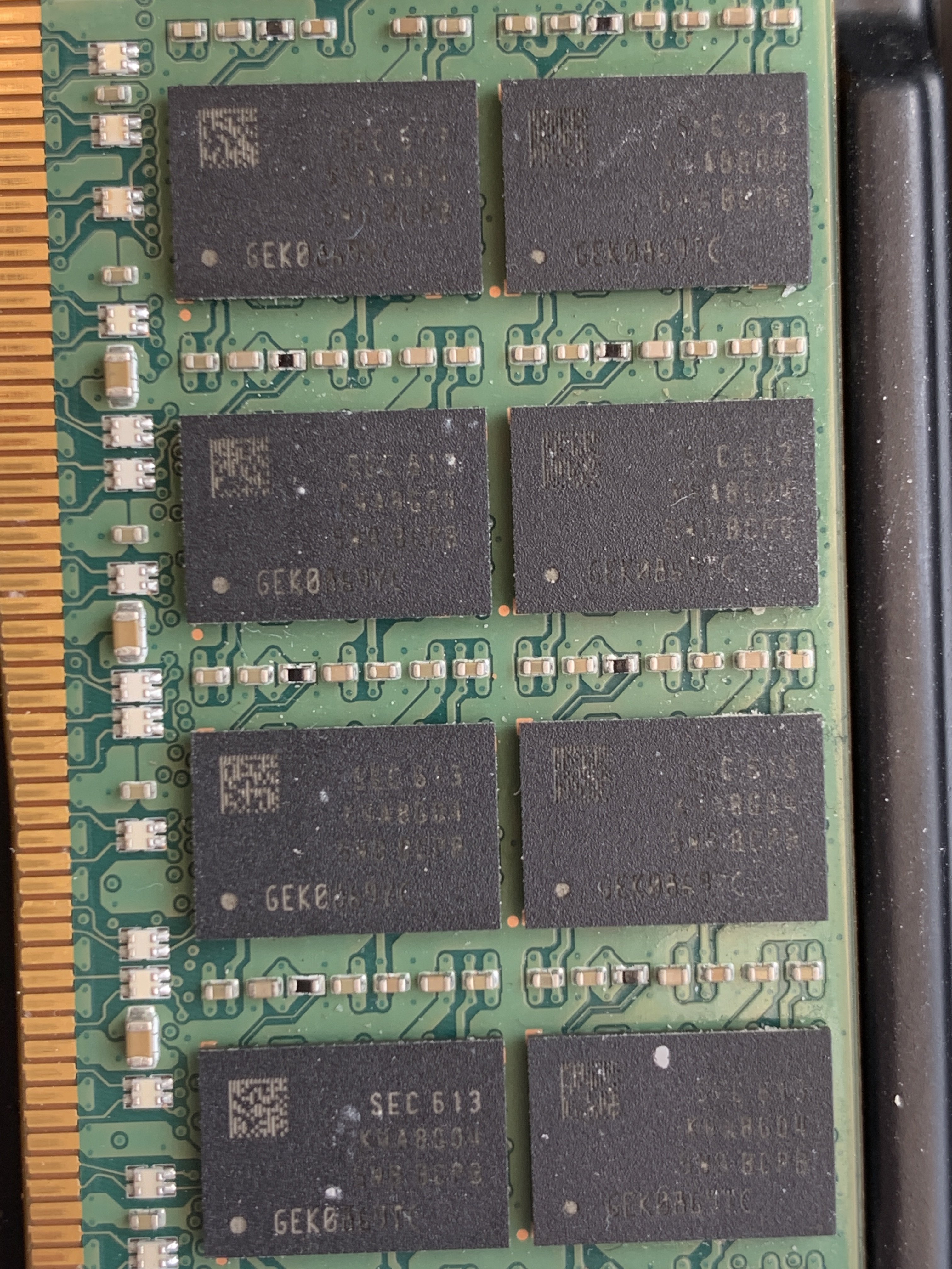 Jedoch ist mit bei der Ansicht auf die Module aufgefallen, dass die Kontakte der Riegel für mich teilweise total verdreckt aussehen und die Speicherchips auch zum Teil keine Beschriftung mehr haben.