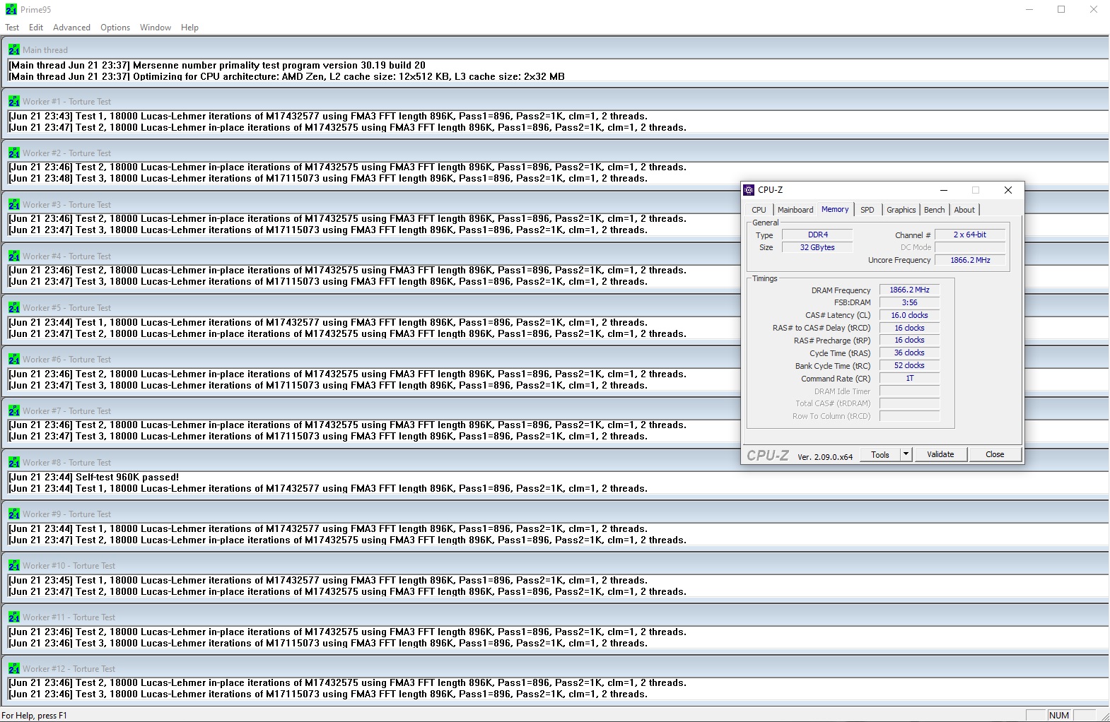Nachdem ich gestern quasi schon das gegenteil bewiesen habe, habe ich jetzt trotzdem mal so zum Spaß die Timings auf 16 16 16 16 36 52 gesetzt und p95 mit large FFTs angeschmissen. Bei immer noch gleicher Spannung wohlgemerkt (1.35V)