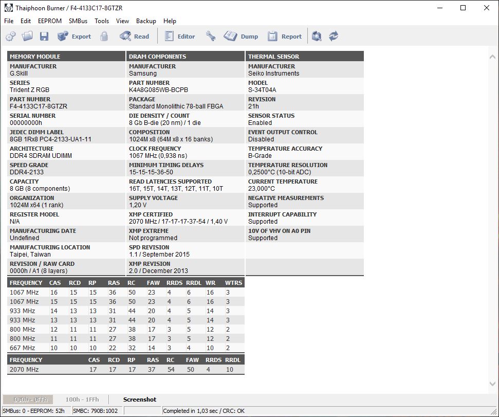 Und wie man sieht, wird nicht einmal das 2133Mhz Profil korrekt übernommen (tRC).