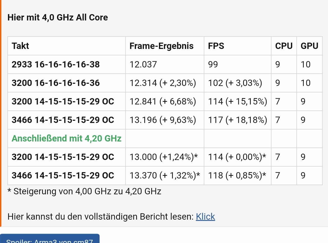 Die Kunst beim RAM OC ist den maximalen Takt bei kleinst möglichen timings (das Zusammenspiel von beiden ist gerade für min fps wichtig, ich verlink dir nicht noch mal meine Signatur) zu erreichen.