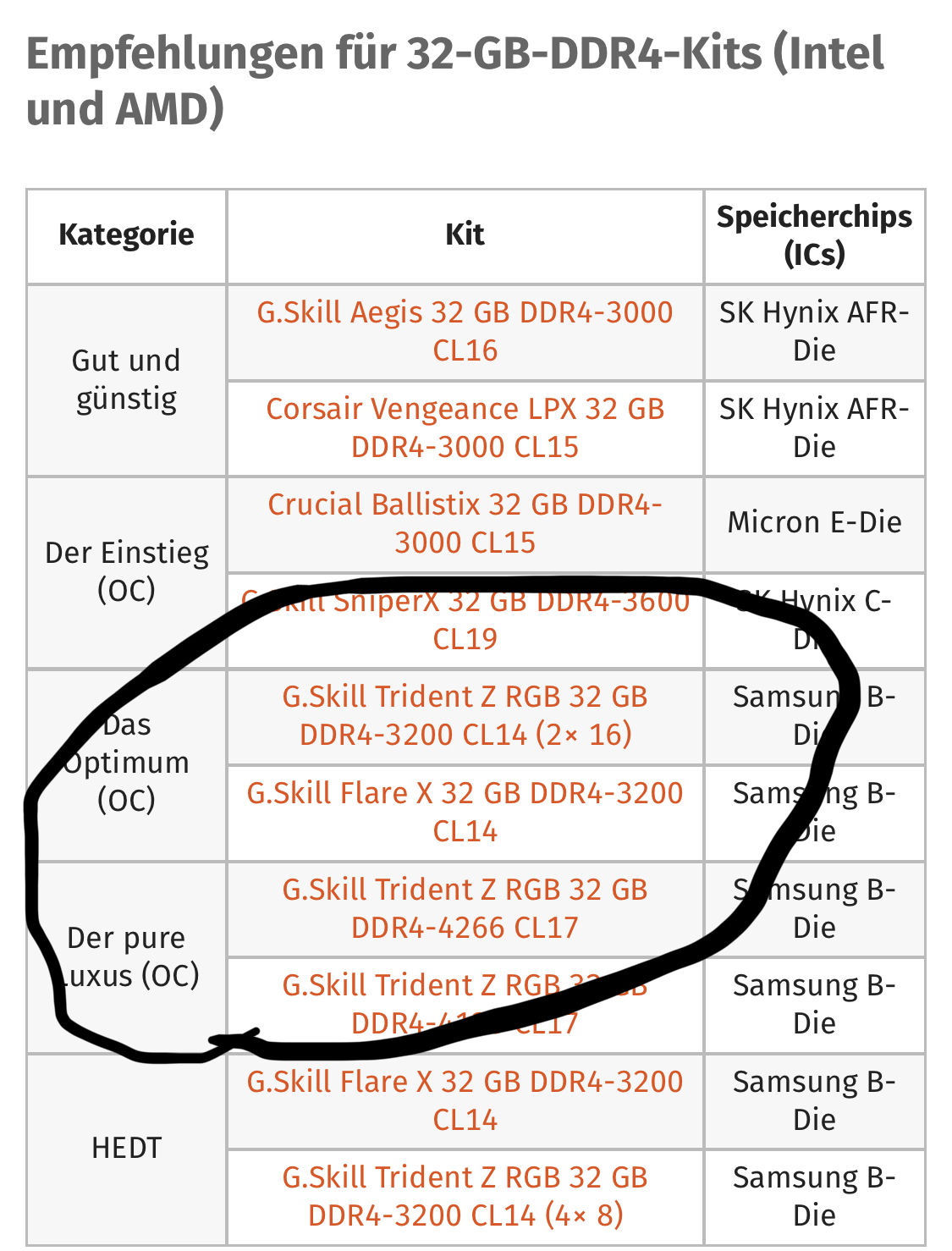hab ich gelesen und tatsächlich ist genau da ne lücke wo es interessant wird (3600). keine 3600er cl 17 empfehlung drin :-(cm87 schrieb: