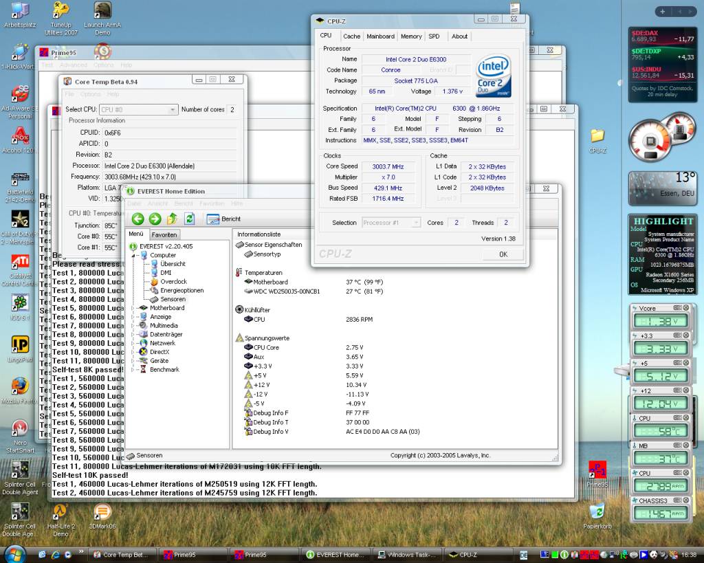 -asus P5B (und das ist mir beim ersten overclocking kaputt gegangen, als ich vcore auf 1,425 gesetzt habe und wirklich nix anderes als FSB auf 429 und Dram auf 858mhz)