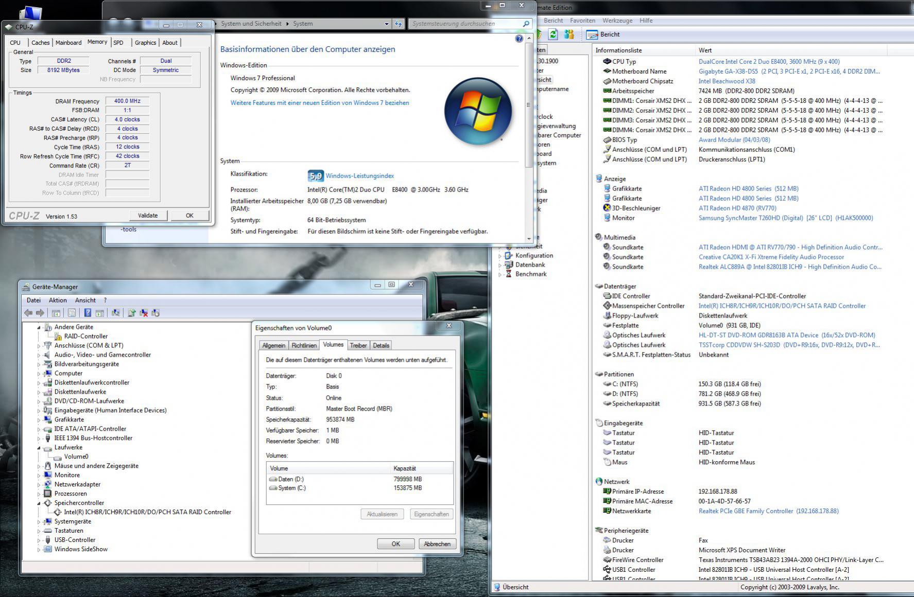 und zwar habe 8GB (4x2GB) Corsair XMS2 DHX 6400C4 DHX windows und alle anderen tools sagen mir ich habe nur 7,25 oder 7,4GB.
