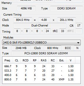 Was auch immer du da für ein Programm zum Auslesen benutzt, wenn die Reaktionszeit die ist die da nicht in der Tabelle läuft, dann läuft dein Board eh völlig anders als der "ECO" es im XMP vorsieht.