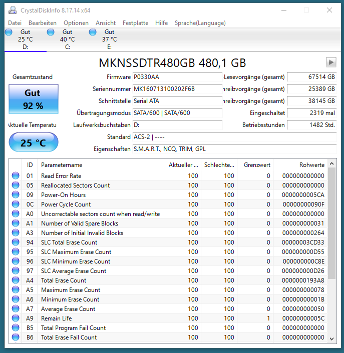 Ich habe dann gedacht, ok, Windows ist schon ewigkeiten installiert, machste das mal neu und holst dir in dem Zuge ne größere SSD für Windows und 32 GB Ram.