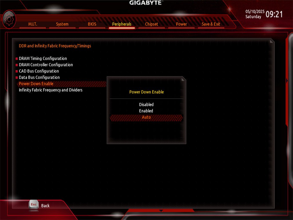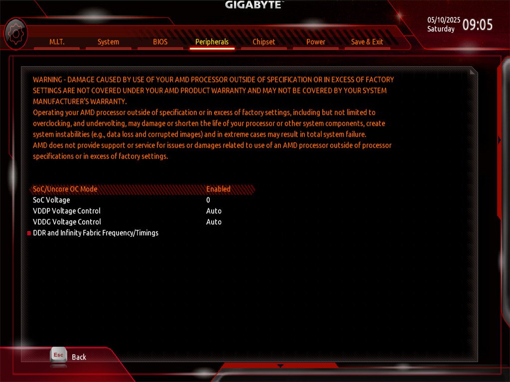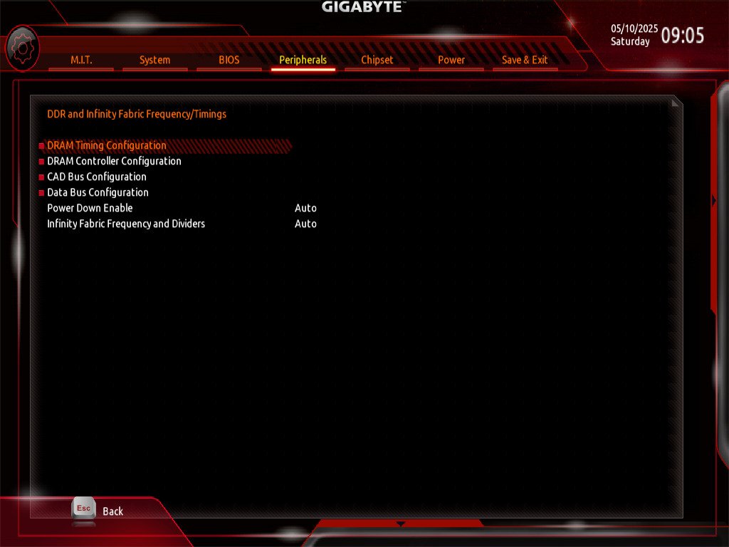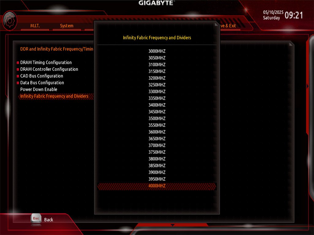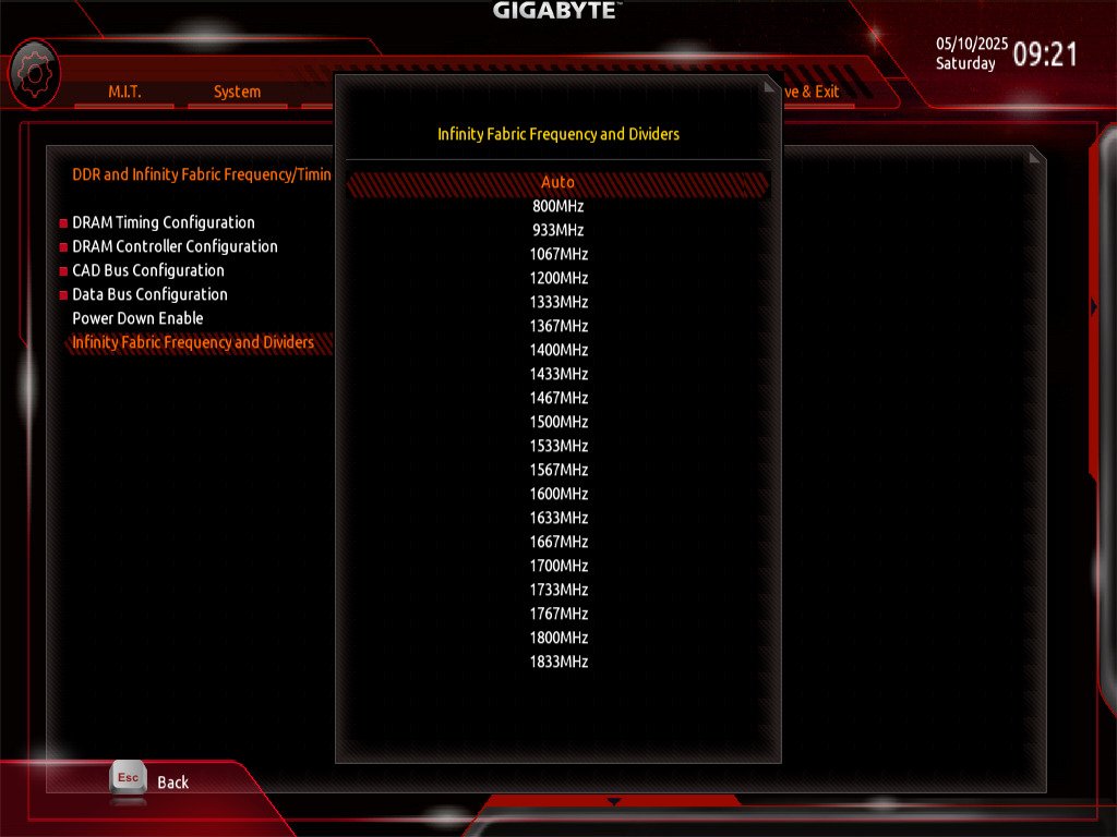Außerdem hatte ich unter dem Punkt "DDR and Infinity Fabric Frequency/Timings" -> "Infinity Fabric Frequency and Dividers", den RAM-Takt einfach mal auf 2800 MHz gestellt.