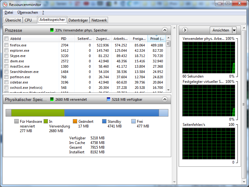 Eben gerade war der Ram wieder auf 50% - also 8 GB - die angeblich benutzt werden, der Taskmanager erklärt mir dabei wenig bis garnichts.