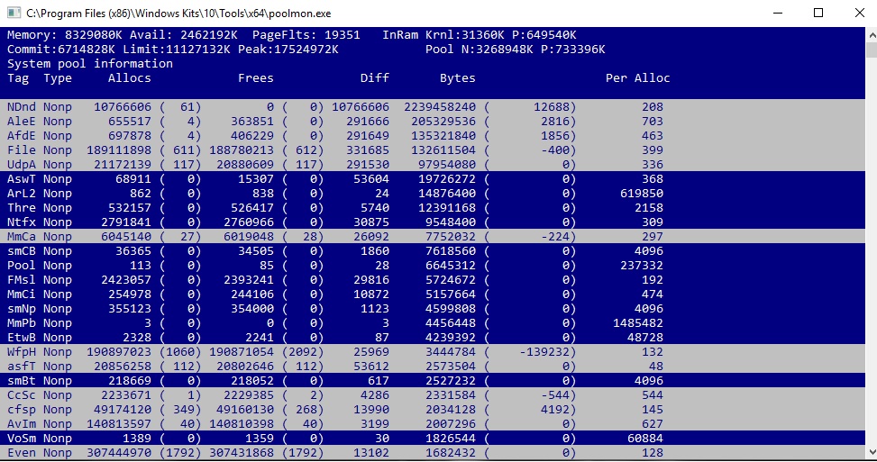Naja jedenfall habe ich die Methode mit "Poolman" probiert und "Ndis.sys"als schuldigen ausgemacht.