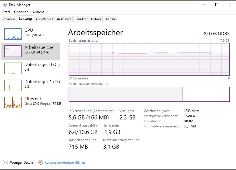 Habe dann den Ressourcenmonitor aufgemacht und gesehen, dass ich über 3GB bei nicht ausgelagertem Pool habe.