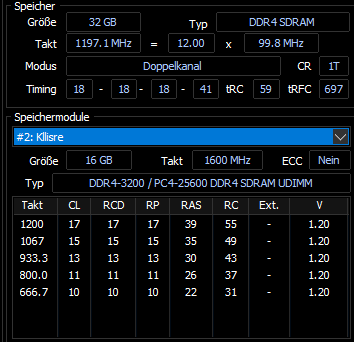 Ich ahbe mir heute neunen ram geholt 2 mal 16gb dims mit 3200Mhz, nun werden muss man dazusagen es wurde über aliexpress bestellt. Einer der dims wird mir 2400Mhz angezeigt der andere mit 3200Mhz ins wird dann durch den Taskmannager 2400Mhz angezeigt, ist auch logisch der langsamere setzt sich durch, (funfact vertasuche ich die slots der beiden denkt sich der taskmannager jedoch na 2660Mhz, aber das halt ich für unsinn) nun zeigt hwinfo an das beide ind er beschreibung für 1600 ausgelegt sind, das kann man nun ja mal zwei nehmen. (siehe bilder) aber nur in der beschreibung, (ich denke die kann der hersteller schreiben) bei unterstütze modul timings stehten bei dem einem der beiden dims aber nur 1200 als max, und das ist das problem, ich denke der einen ist einfach kein 3200Mhz sondern ein 2400Mhz dim, die beschreibungen der dims habe ich als bilder eingefügt