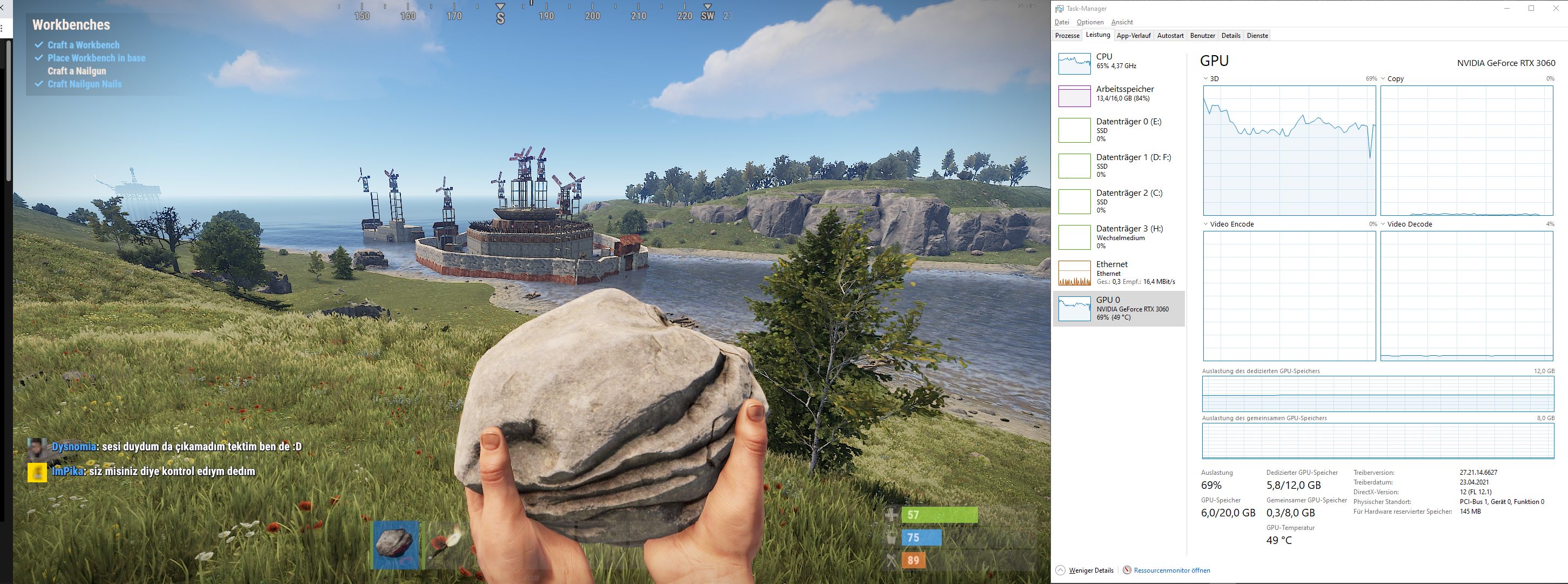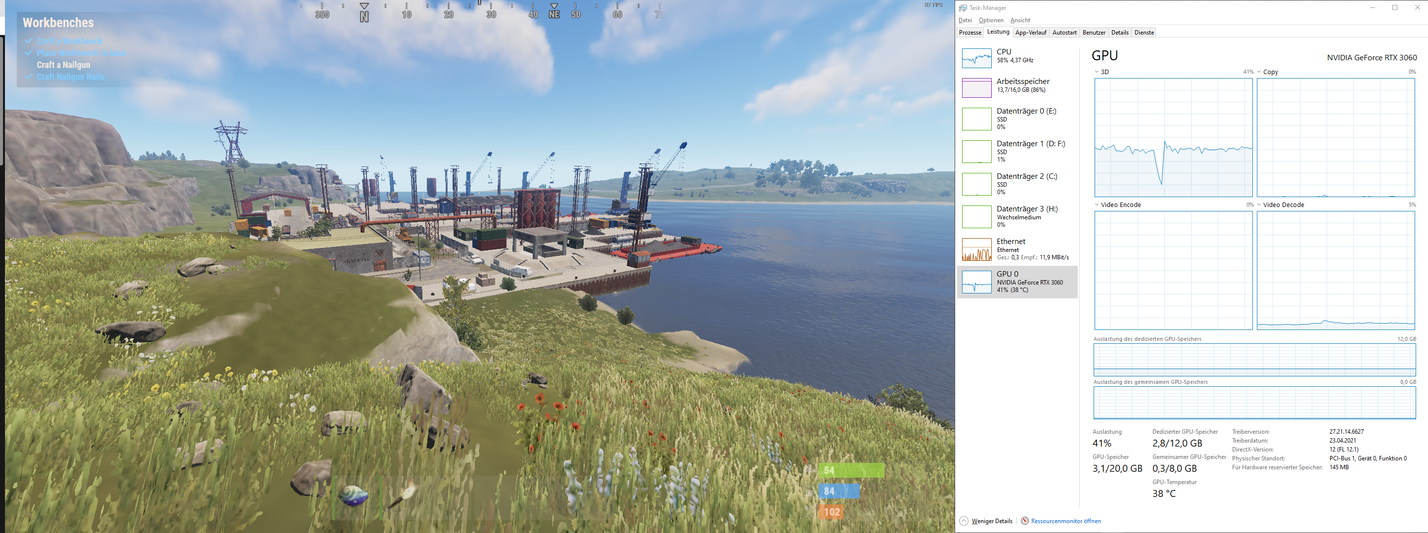 In Rust CPU auf ~50%, Ram auf 86% und GPU ~50%