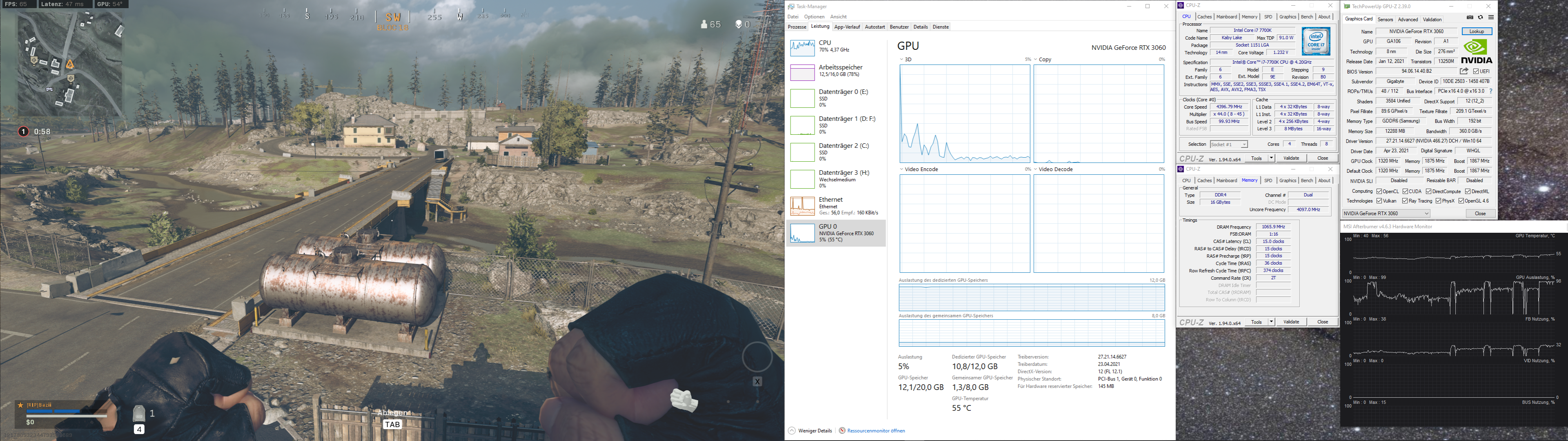 Die Temperaturen der GPU sind absolut okay, da wäre die Frage nach den Taktraten. Taktet die 3060 voll aus, ist die Lösung einfach: