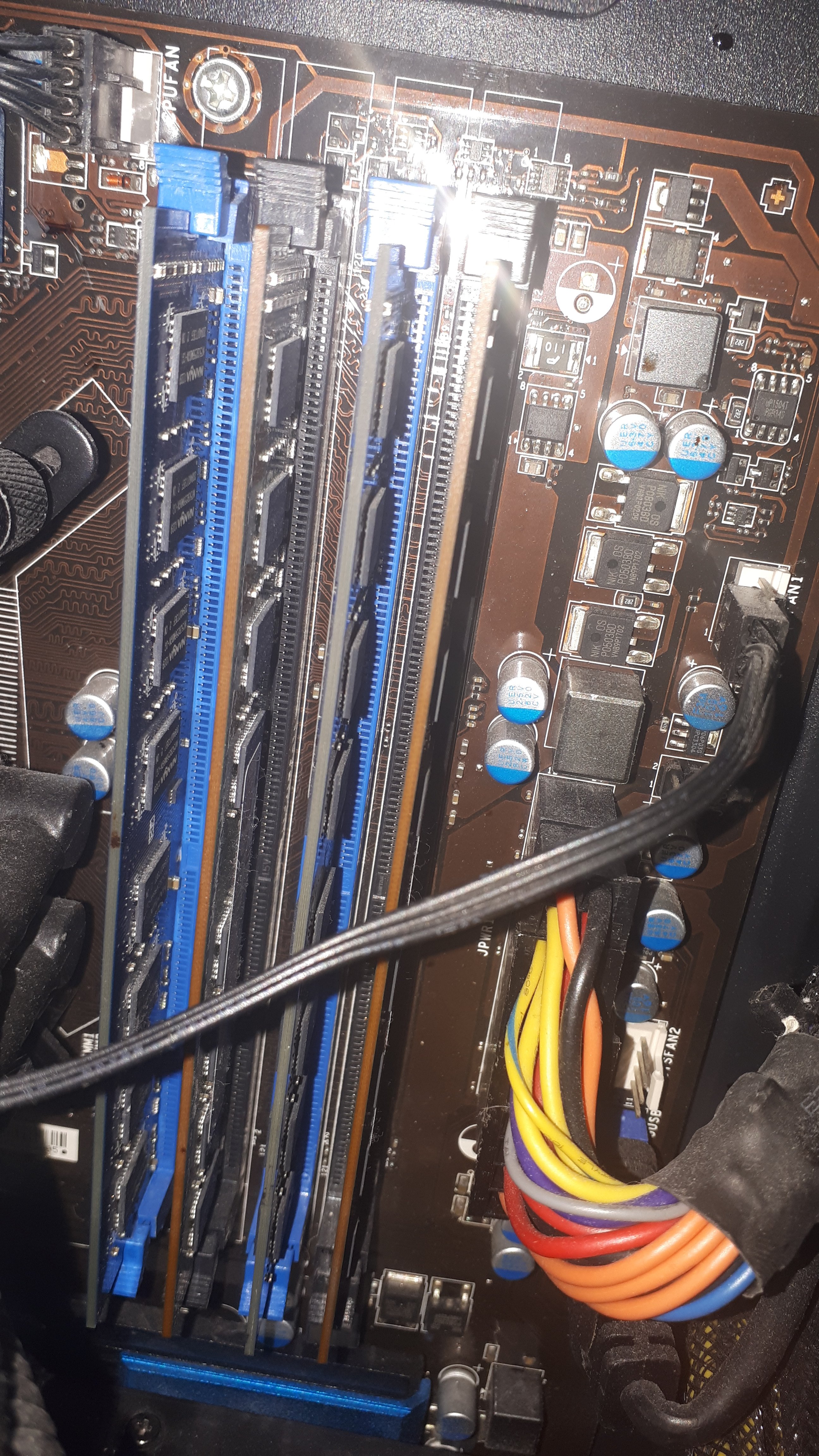Ich habe eben gerade kurz anderen Ram in meinen Pc getan und habe ihn gestartet. Er hatte Strom die Lichter im Pc gingen an und die Lüfter auch, aber Tastatur und Bildschirm blieben ohne Strom. Dann nach 5 sekunden fuhr er sich wieder runter. Nach 3 sekunden wiederholte sich dies.