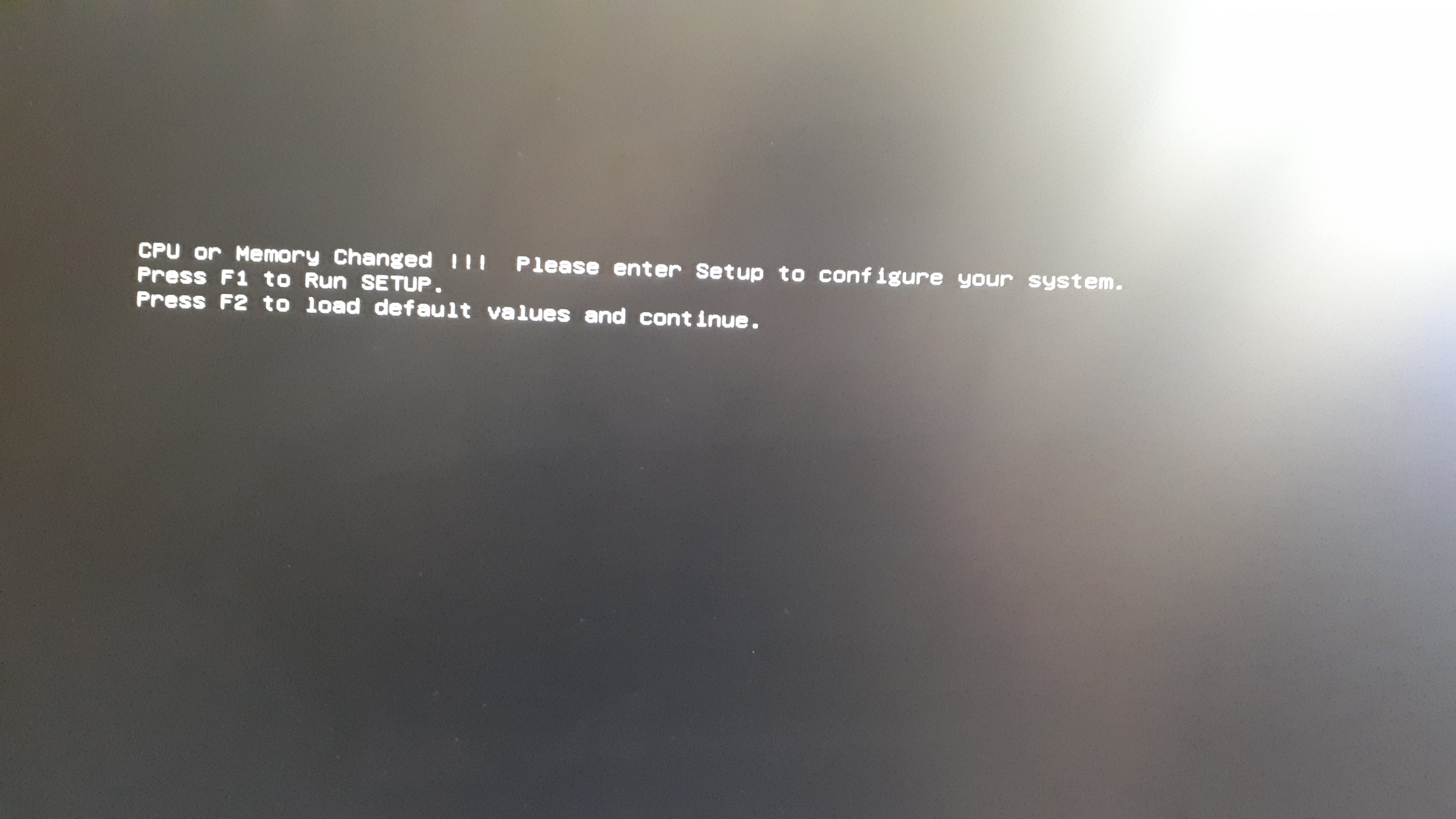 -ram einzeln testen (rin blauer ram ohne erfolg, ein grüner mit erfolg(bildschirm tastatur an "cpu or memory changed..." siehe antworten um den ganzen text zu sehen