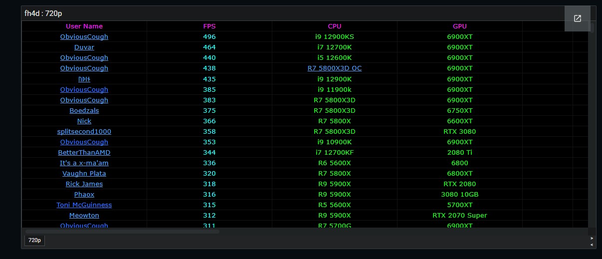 R7 5700G 311fps, 5900x 312/316/318Fps je nach GPU. Der R6 5600x ist mein Highlight.