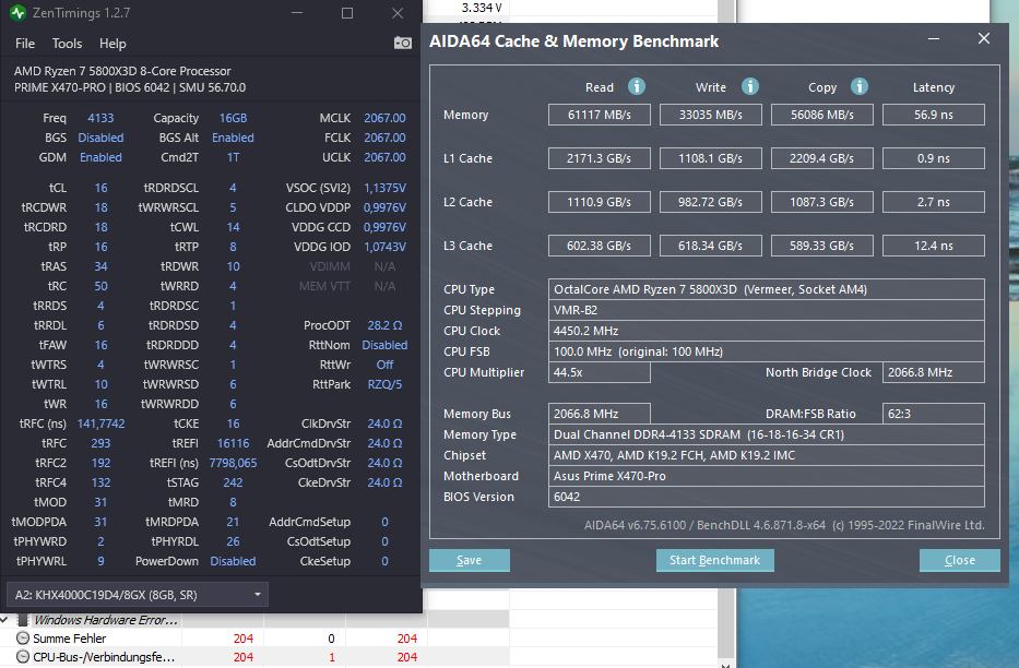 Hatte gestern mein Ram Setting für 3800 (nicht XMP) weitestgehend fertig, und wollte mal spasseshalber sehen wie stabil die config bei höheren Frequenzen ist. Ich konnte sogar mit 4066 mit Aida benchen. Und WOW, die leichten Taktsteigerungen bringen richtig viel in Aida. Aber leider gibts im mem Tests schnell Fehler. 4000 läuft wesentlich besser, aber nicht stable halt. Mal schauen, wann ich die 4000 angehen, und vielleicht stable bekomme...