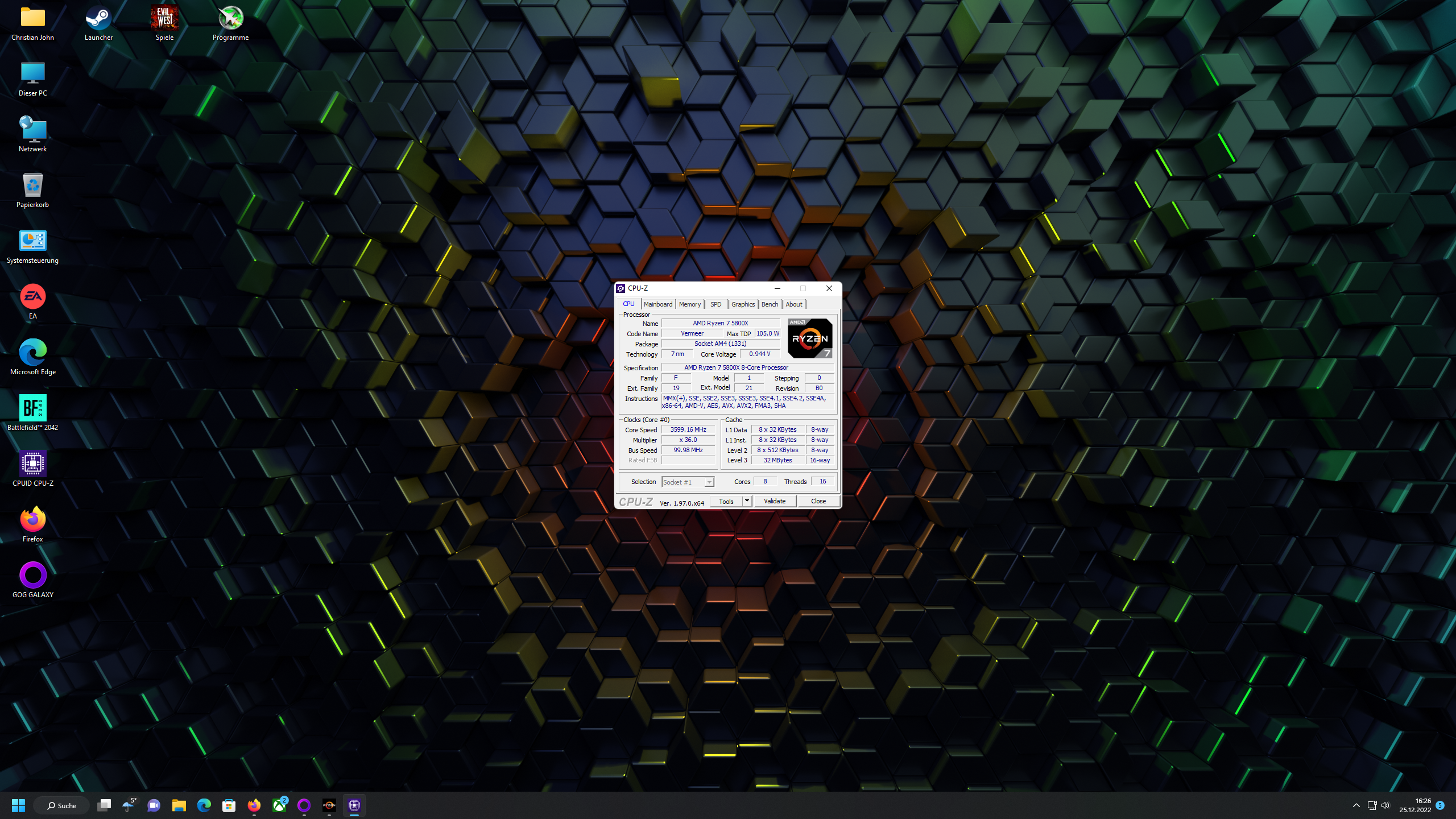 Ryzen 5800x ~ 4850 MHz (angepasst mit Curve Editor)