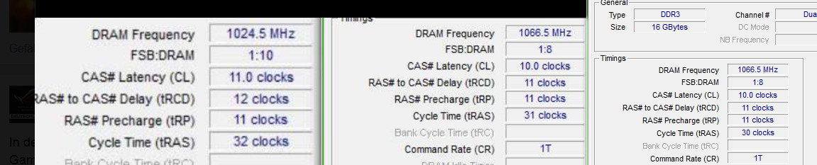 Weitere Optionen wären 2000x8/1600=10ns oder 2000x9/1866=9,65ns. Mal schauen, ob die zweite möglich ist.