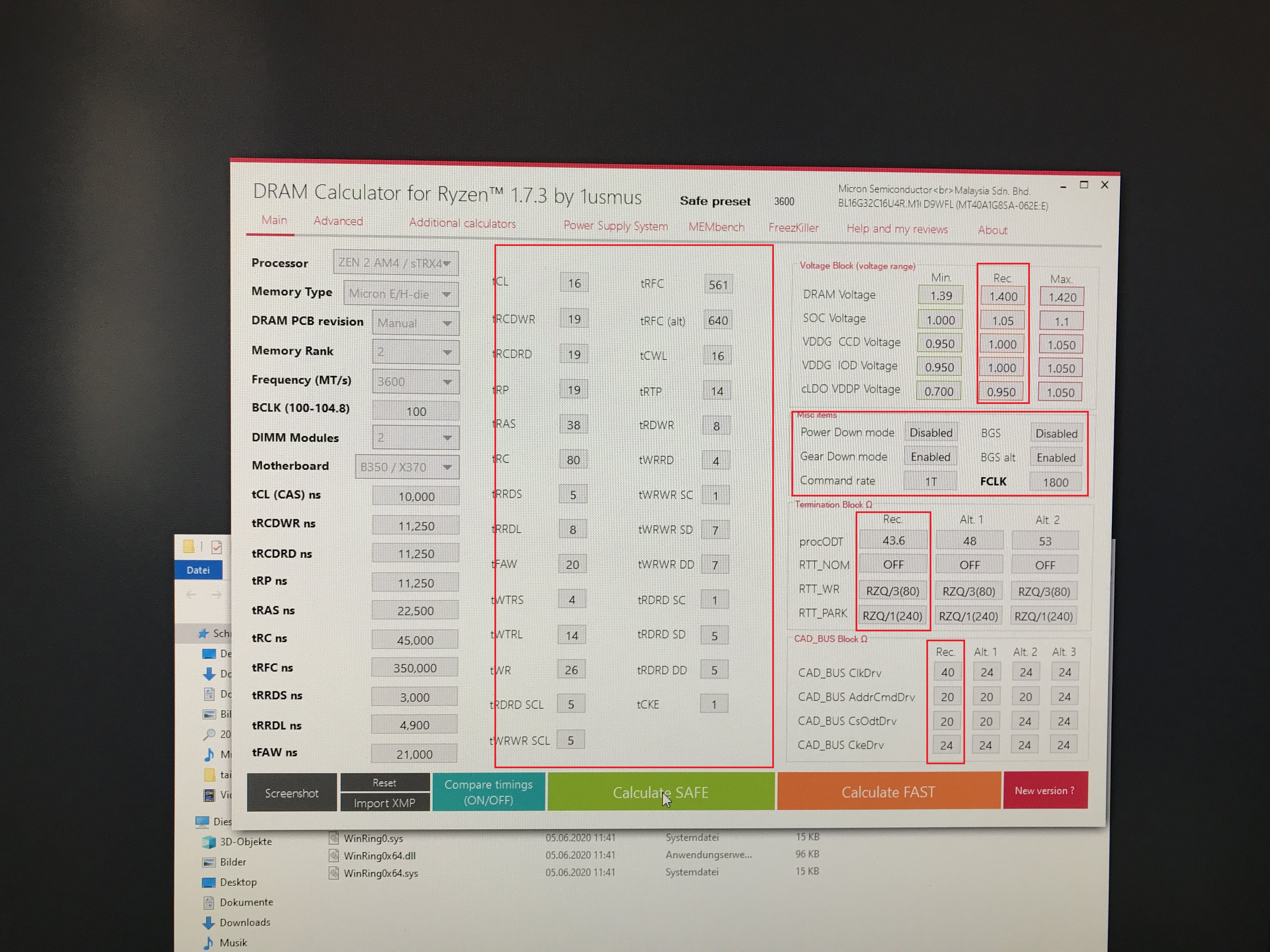 Ich muss dazu sagen, dass ich absoluter anfänger bin und overclocking also noch nie betrieben habe. Ich habe über Taiphonn Burner die Chips ausgelesen, als HTML gespeichert und in dram calculator eingelesen. Herausgekommen sind für 3600 Hz folgende Konfiguration.