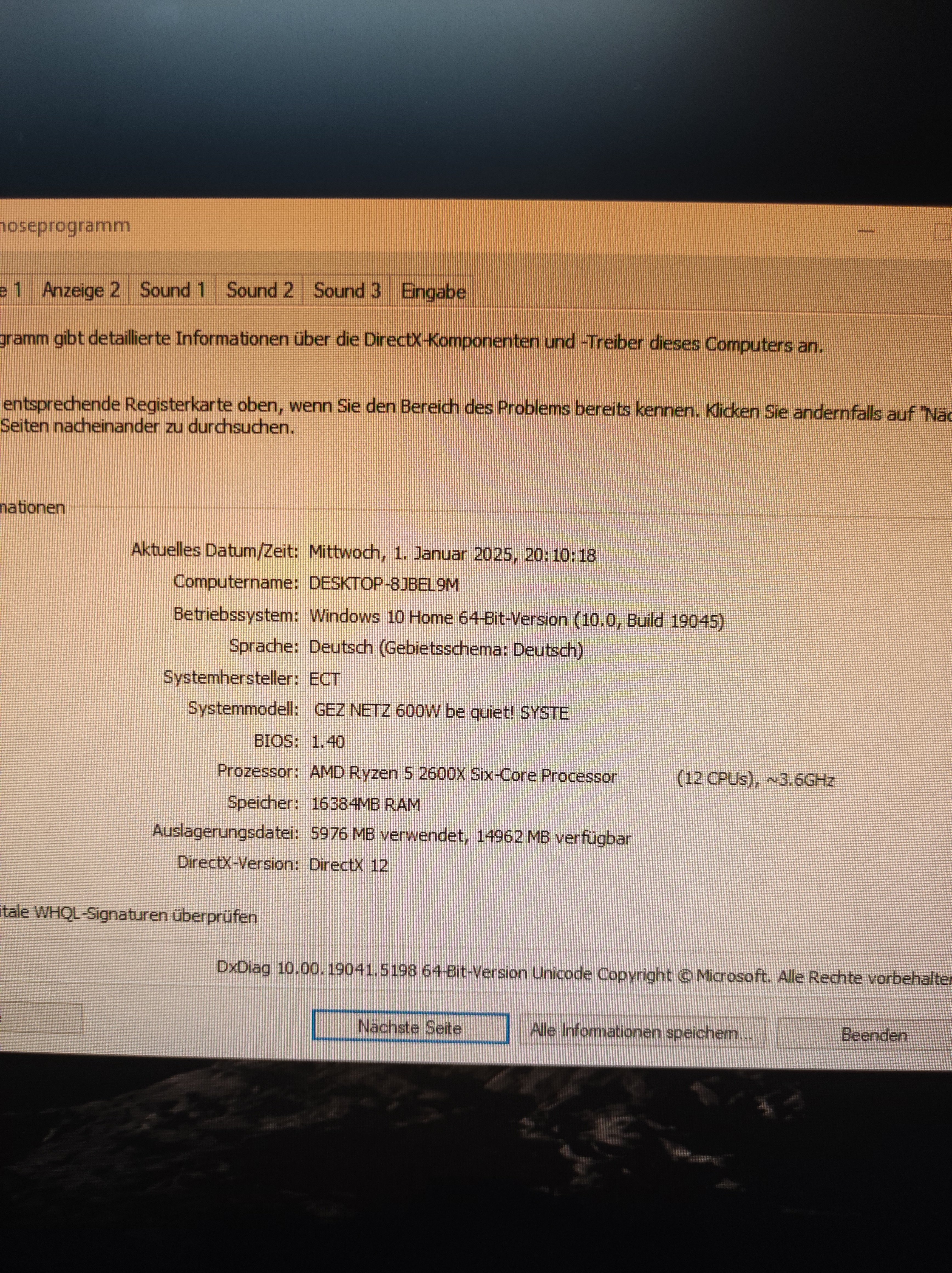- Erfolglos im BIOS selbst versucht das Problem zu beheben, durch Updates oder ähnliches.