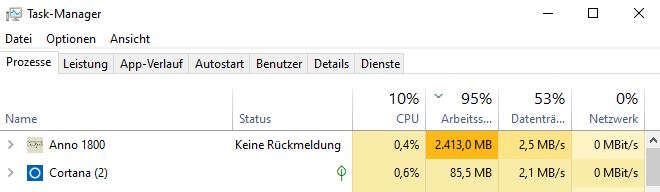 Desweiteren ist mir heute bei Anno 1800 aufgefallen, dass das Spiel knapp 3GB nutzt und der Ram schon bei 95% liegt? Ich weiß, 8Gb sind etwas mau für das Spiel aber nunja.