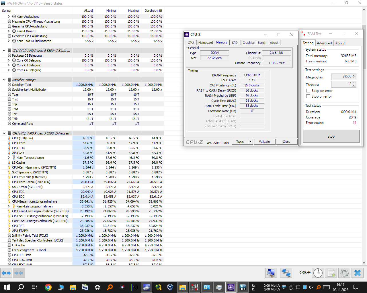 in HWinfo64 finde ich einfach die RAM Spannung nicht. Habe den Verdacht, dass diese für Abstürze sorgt und zu niedrig ist (AUTO Setting im BIOS).