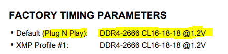 ROW: 0 - 8GB PC4-17000 DDR4 SDRAM Corsair CMK16GX4M2A2666C16 = 1066Mhz