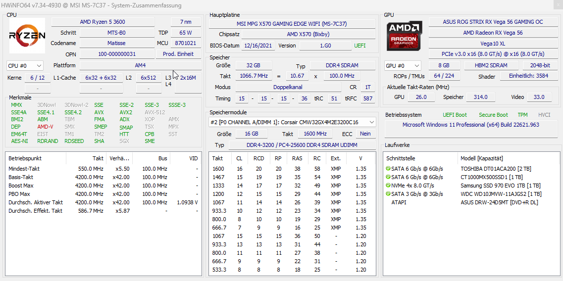 Das wollte ich nun überprüfen und bin deshalb ins BIOS hineingegangen und habe mir Infos über HwInfo/CPU-Z auslesen lassen.