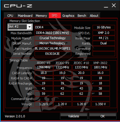 Habe den Crucial Ballistix DDR4-3600 Desktop Gaming RAM (hier der Link dazu: Link). Nominale Spannung bei 3600 MHz sollten laut Hersteller 1.35V sein.