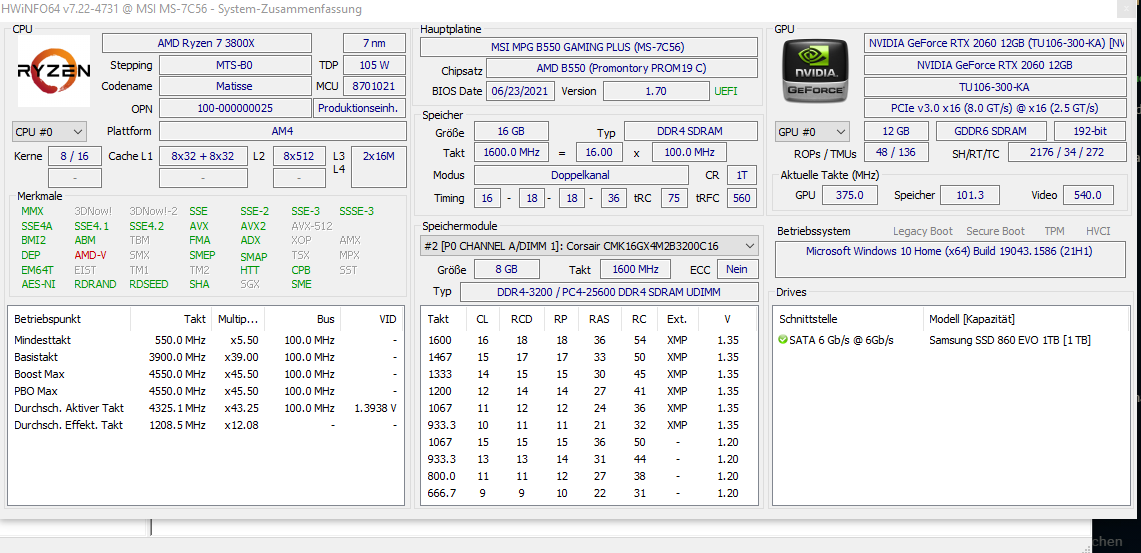 Habe mir gestern einen neuen PC zusammengebaut, verbaut ist ein Ryzen 7 3800x, ein MSI b550 Gaming Plus und 16gb DDR4 3200Mhz Arbeitsspeicher (dual Channel). In HWINFO wird mir jetzt angezeigt, dass mein RAM nur mit 1066.7 Mhz taktet, also denke ich insgesamt wohl mit 2133 Mhz (?). Meine Frage ist jetzt wie ich es schaffen könnte, dass der RAM auf 3200Mhz taktet.