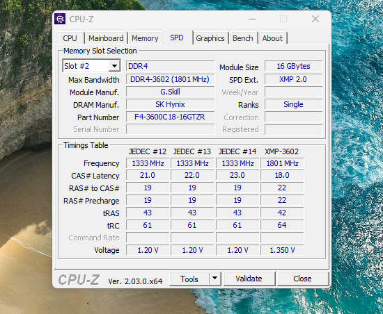 Aktuell nutze ich die G.Skill 32 GB DDR4-3600 Trident Z RGB. XMP Profil ist aktiviert nur das ich die Ram-Riegel manuell auf 3200mhz umgestellt habe. Welche schärfere Timings könnte ich bei 3200mhz manuell anpassen, da er diese ja vom 3600mhz CL18 usw. Profil übernommen hat. Anbei 2 Screenshots von CPU-Z.