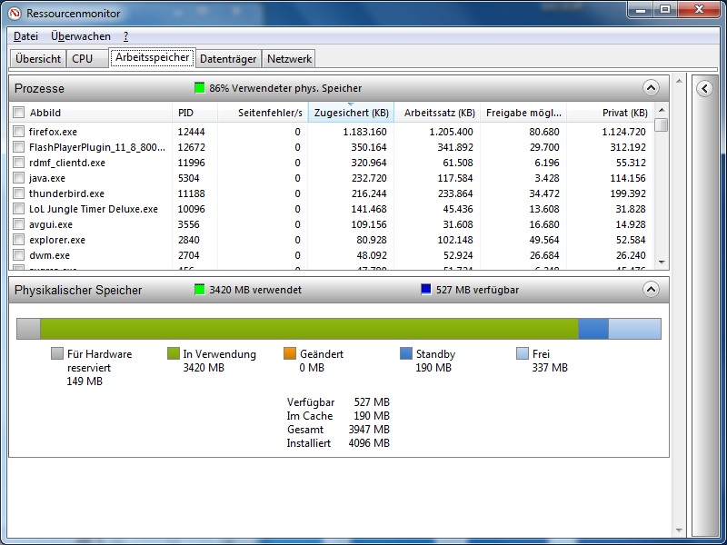 • sowie von dem Reiter/Tab Arbeitsspeicher im Ressourcenmonitor selber